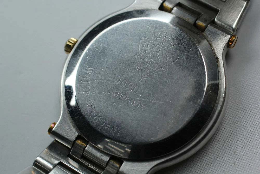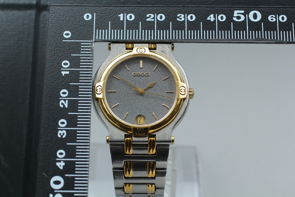 [Near MINT] Vintage Gucci 9000M Black Dial Gold 32mm Quartz Men's Watch #55550187 Description Total Condition; Near MINT Max Wrist Size:17cm Appearance; Appearance is beautiful. tiny scuffs from normal use. It shows signs of use. *Please check photos. Functional; It works properly. The watch is currently running smoothly, but since it is a battery-powered watch, there is a possibility that it will stop during transportation. Please understand that we do not guarantee that this will happen. Please contact me first for return before you ship it back to me. Bundled Items; All you can see on the picture will be included in a set of a package. Above condition is based on my own opinion. Please check the photo carefully. Please feel free to contact me for any questions! Thank you. Shipping I send a product by FedEx International Priority,eBay SpeedPAK Express . I attach the tracking number. Please bid it without worrying. Shipping is available from Monday to Friday. Weekends are not available because office is closed. Returns Unconditional Return Policy Customer service and satisfaction are very important to us. I have an unconditional return policy if notified within 30 days of the receipt of the item. All returned items must be the original condition. All return requests must be made within 30 days of the receipt of the item. Please contact me first for return before you ship it back to me. The postage of the returned goods is a buyer burden. International Buyers Please Note: Import duties, taxes, and charges are not included in the item price or shipping cost. These charges are the buyer's responsibility. Please check with your country's customs office to determine what these additional costs will be prior to bidding or buying.
