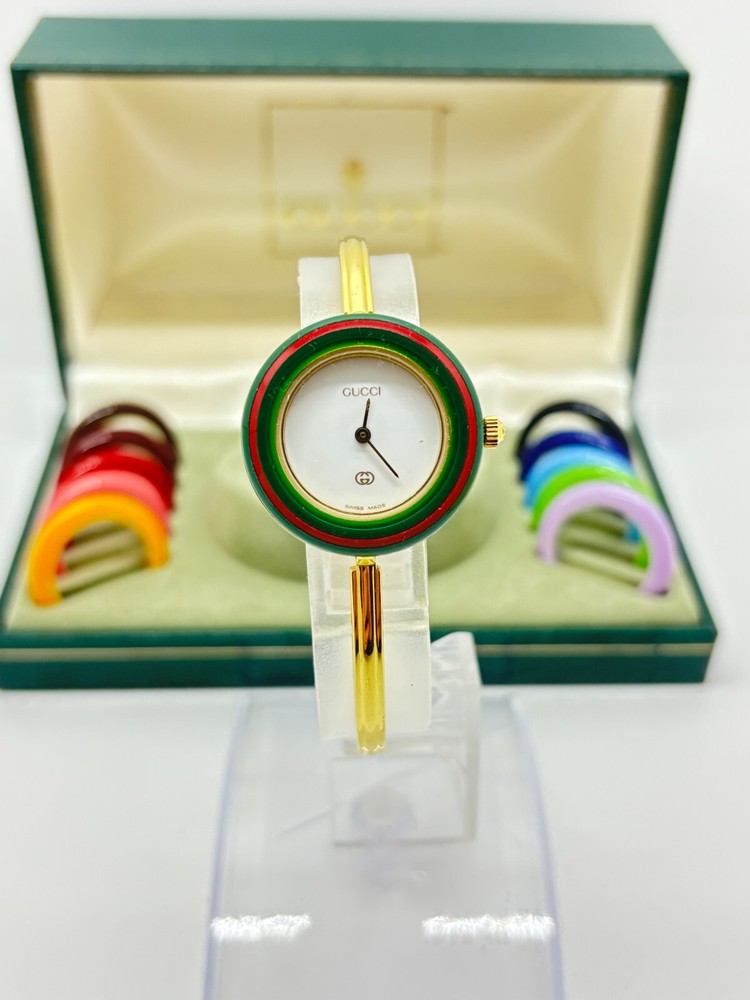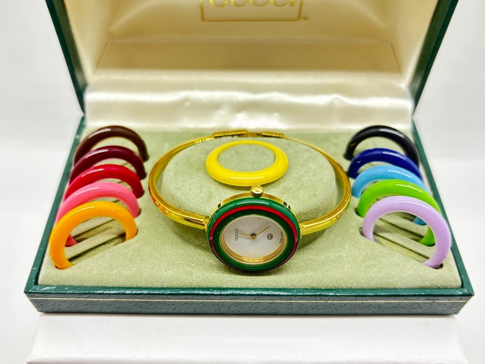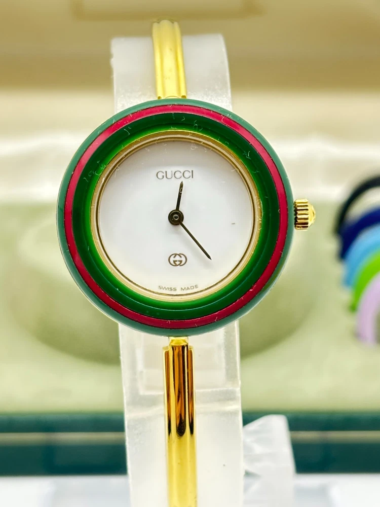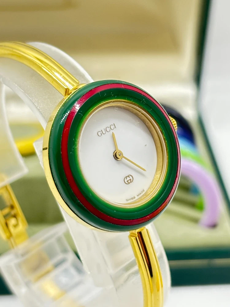Near Mint GUCCI 1100-L Gold Quartz Watch w/Box 12 Colors Japan