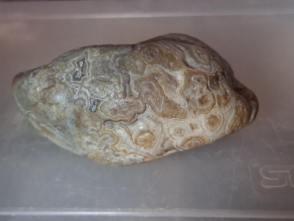 The Fairburn Agate is a type of display specimen, specifically a crystal and mineral specimen. It is a unique and collectible item that falls under the category of rocks, fossils, and minerals. This particular agate showcases striking patterns and colors created by the natural process of sedimentary rock formation, making it a visually appealing addition to any collection. Its geological significance and aesthetic value make it a coveted piece for collectors of crystal and mineral specimens.