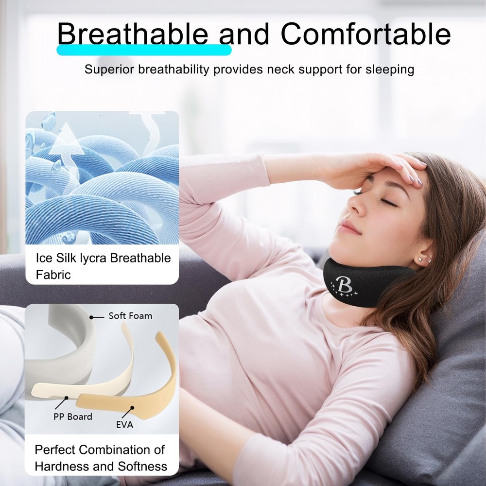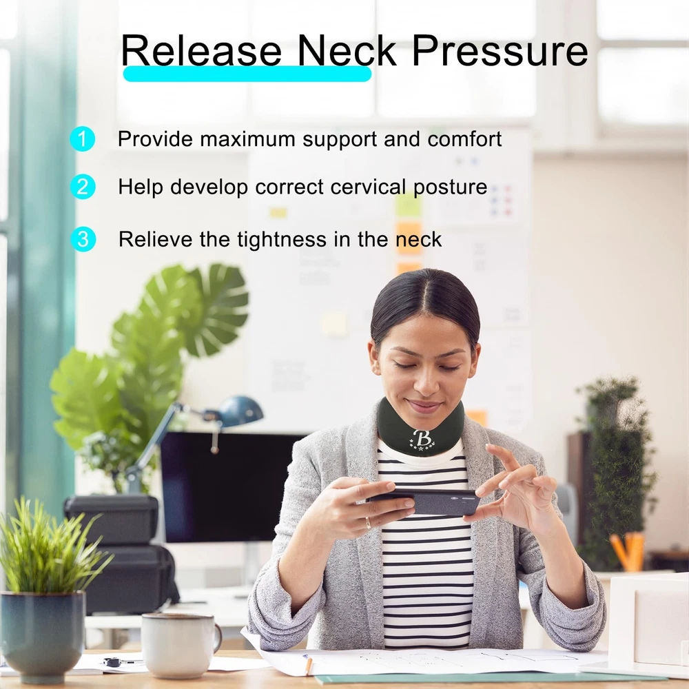 Our neck collar adopts an ergonomically designed "V" shaped foam pad that conforms to the neck and jaw lines, providing a comfortable fit, lightweight support and stability for the head and neck, and helping to maintain the neutral position of the spine. Smooth and delicate ice silk fabric is breathable, ensuring dryness. Its excellent skin friendly performance keeps you comfortable during long-term use, and the detachable fabric cover can be cleaned. It can also be worn while sleeping. 1.Our neck brace meets a variety of needs, whether it's during the daytime at work, at night when you're relaxing, or even when you're traveling long distances, our non-rigid support neck brace provides you with comfortable support all day long. 2.The neck brace for women can be used as a neck brace for sleeping, which restricts the angle of movement of the cervical spine while sleeping, realizing passive protection of the cervical spine to avoid stiff neck after sleep. 3.The soft cervical collar is designed with Velcro straps that do not stick to hair, allowing you to freely adjust the length of the cervical collar according to your needs and prevent pain caused by movement. 4.The neck brace is made of high quality soft cotton. The inner core of the cervical collar is odorless and breathable, and the skin contact area is made of unidirectional moisture-conducting fabric, which can keep the neck fresh and ensure maximum comfort even after long time wearing. Ergonomic Cervical Collar: The cervical collar features an ergonomic V-shaped design that curves precisely around the chin and neck to distribute pressure and provide firm support. The collar fits snugly around the neck to ensure a comfortable fit. Adjustable Neck Stretcher:The Neck Stretcher features an adjustable design that allows you to adjust the length of the cervical support to suit your comfort and needs. Simply wrap the neck stretcher around your neck and secure it with Velcro.The cervical support is suitable for neck circumferences between 13.7 and 18.9 inches. Neck Traction Device: The neck braces for neck pain and support help relieve neck pain and stress by seamlessly fitting the contours of the neck and jaw, providing much-needed support and reducing pressure on the neck muscles. Comfortable Foam Material: The interior of the neck support brace is made of soft cushioning foam material. It provides greater comfort and cushioning for your neck without sacrificing support. The outer layer is made of smooth and breathable ice silk fabric provides a different skin-friendly experience for all-day wear. Excellent Portability:Our neck support can be easily rolled up and carried, and you can use it almost anywhere to stretch your neck, reduce neck pressure and relieve pain. It provides comfortable support all day long. Whether you work during the day, relax at night or sleep.