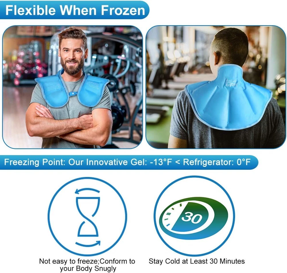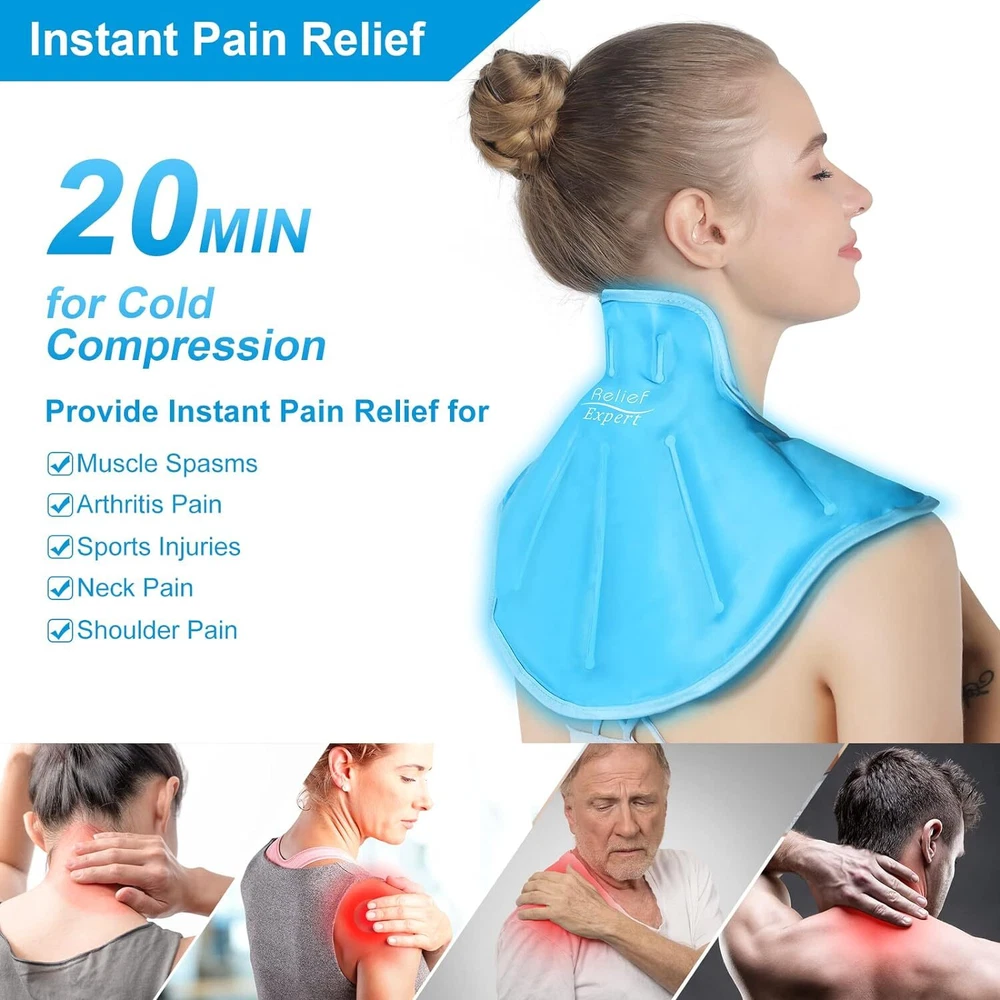 Innovative & Two-sided Design- The Relief Expert shoulder ice pack wrap adopts dual-fabric. One side is soft plush fabric that is available to use straight to skin, stays cold without condensation and prevents cold injuries. The other is nylon fabric, penetrating deeper coldness to targeted areas if the plush side isn't quite cold enough. Large Gel Coverage & Prevent Gel Leakage- The neck ice pack wrap is filled with 30% thicker gel than others, providing full and deeper coldness for neck and shoulders. Double-seam technology prevents gel leakage. Excellent quality of gel ice pack for neck and shoulders enables reuse frequently. Keep Flexible & Stay Cold Longer- Unlike other similar products, our ice pack for neck has lower freezing point(-13°F), which keeps flexible and soft even after freezing long time. Relief Expert ice pack for shoulders' cold-lasting time is longer than others as well, easy to enjoy soothing relief and snug fit shoulder ice pack. Effective Pain Relief- The ice pack shoulder helps reduce bruises, relieve sports injuries, arthritics, swelling and chronic joint pains. Portable to Use - When chill the ice neck wrap in freezer, place the neck and shoulder ice pack in the durable bag to protect the neck shoulder cold pack from stain and odor in freezer, or portable to take away for outside activities. Product Description More Relief Expert Ideal Choices Add to Cart Add to Cart Add to Cart Customer Reviews 4.3 out of 5 stars 3,550 4.7 out of 5 stars 1,838 4.3 out of 5 stars 2,545 4.0 out of 5 stars 27 4.4 out of 5 stars 18 4.9 out of 5 stars 37 4.7 out of 5 stars 22 Price $21.99 $ 21 . 99 $19.54 $ 19 . 54 $16.99 $ 16 . 99 $18.99 $ 18 . 99 $29.99 $ 29 . 99 $18.99 $ 18 . 99 $18.69 $ 18 . 69 Targeted Pain Relief Neck, Shoulder Shoulder, Back Shoulder Neck Neck Ankle, Foot, Plantar Calf, Shin Material Plush side and Nylon side Plush side and Nylon side Plush side and Nylon side ABS&TPR Pliable Lycra and Mesh Fabric Copper Ion Fabric & Terry Copper Ion Fabric & Terry Filler of inside Gel Gel Gel - Gel Gel Gel Therapy Type Cold Cold Cold - Cold Cold Cold Pliable ✔ ✔ ✔ ✔ ✔ ✔ ✔