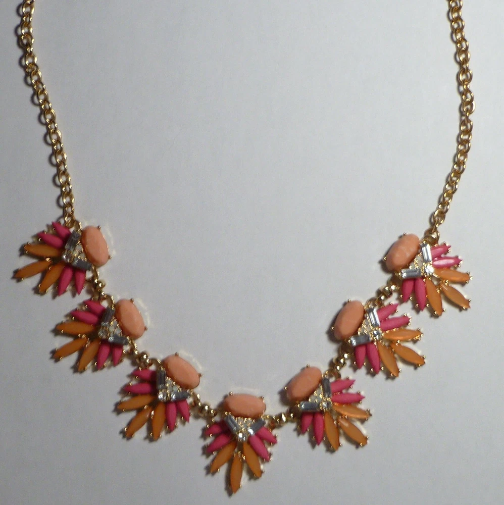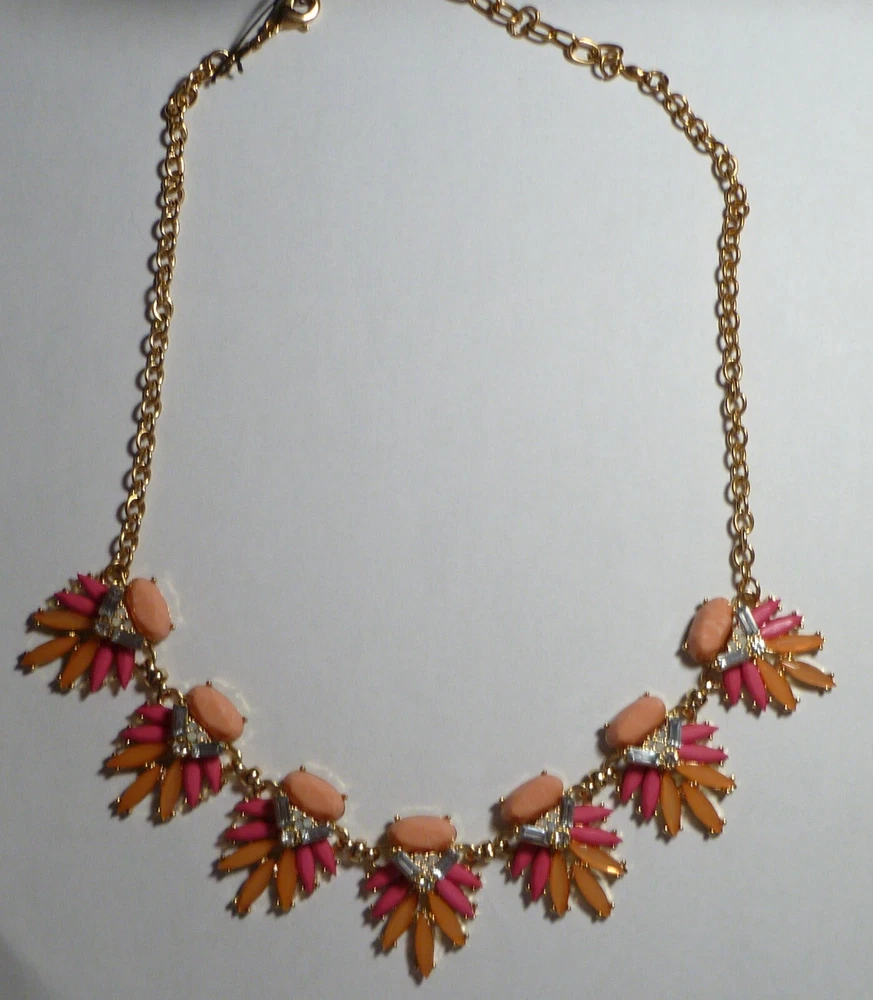 Necklace Dia & Co pink peach gold tone cut resin rhinestone 24". This necklace is in good condition, adjustable, and 24 inches long. Please s ee photos as they help with my description. Shipping ~ Ground advantage takes 3-5 business days. I ship within 2 business days. Combined shipping ~ Combined shipping cost is automatically available at checkout when you order more than one item from me. Thanks for looking. Returns~ Item may be returned within 30 days for refund. The refund will be issued once the item is received in original selling condition. Damage~ I package my sold items well but i f your item happens to be received damaged please provide me with photos of damage so I can file a damage claim with USPS. Please keep the box or envelope and all shipping materials for claim. Questions~ Feel free to message me. If there is any issue with order please contact me first so I can help you in a timely and friendly manner. International~ All items are shipped via eBay's global shipping program. You may want to c heck which customs and import charges may apply before you purchase or bid. Buyer is responsible to pay if there is any additional import charges, d uties, t ariffs, e xcise taxes, penalties, charges, v alue added taxes, etc. Check with your country's customs office for more specific details if you are not sure. Thank you.