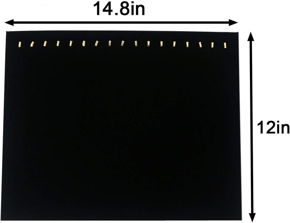 Product Description - TechStore Available at Yawaoutlets Necklace Display Jewelry Tray Organizer Pad Showcase Display Case 17 Hooks VELVET NECKLACE DISPLAY---Necklace Ddisplay Made of High quality velvet material front and paper board back supporter, SIze:37.5cm(14.7") X 30.5cm(12") NECKLACE SHOWCASE--- light-weight and easy to set up. necklace organizer has a slight angle, which is appealing as a display for people looking down on it, but it's not a huge angle, so it doesn't take up more space than needed NECKLACE HANGER ---17 hooks to organize your bracelets and necklaces. The Jewelry Tray suit for personal collection of necklace bracelets, so you can easily pick the jewelry you want to wear, without having to worry about not find the necklace, also applies to jewelry store necklace display NECKLACE DISPLAY---Great for jewelry stores to display their bracelets and necklaces and the easy to carry tray will stack on top of more of these trays so you can store them away safely when the store closes. 100% GUARANTEE --- Please contact our friendly customer service team for a refund if your product's quality can not make you satisfy. We could refund all payment back or resend you a new products if our product is defective About: Color 17 Hooks (1 pcs) Brand Jashem Material Velvet Style Simple Special Feature 17 metal hooks Product Dimensions 12"D x 14.7"W x 0.5"H Target Audience Women Shape Rectangular Occasion Engagement, Mother's Day, Wedding, Birthday Mounting Type freestanding $11.99 Buy Now