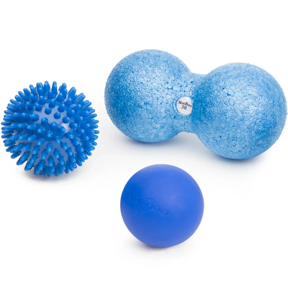 NeeBoo Fit 3 Piece Massage Kit with Carry Bag - New/Unopened What’s in the bag? Double Foam Roller Peanut Ball – 16cm x 8cm. Same material (EPP) as a Foam roller, but shaped like a peanut Spiky Ball – 8cm diameter. PVC material with gentle spikes to allow more give and cushion “Lacrosse” Style Ball – 6.4cm diameter. Looks like a lacrosse ball, but made with silicone for similar density but more comfortable use High Quality Pull-String Carry Bag so you can take them anywhere Exercises and resources are provided online with detailed self-massage videos so we can keep you up to date
