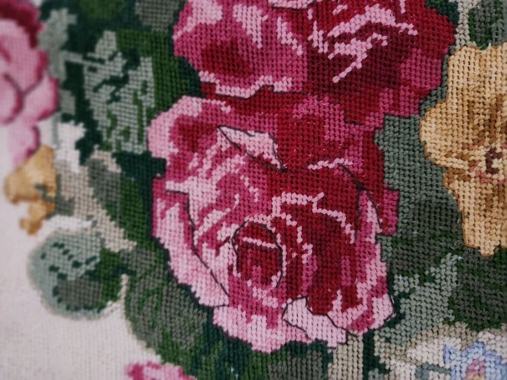 Needlepoint Floral Multi Color Roses Handmade Chair Seat Cover or Pillow