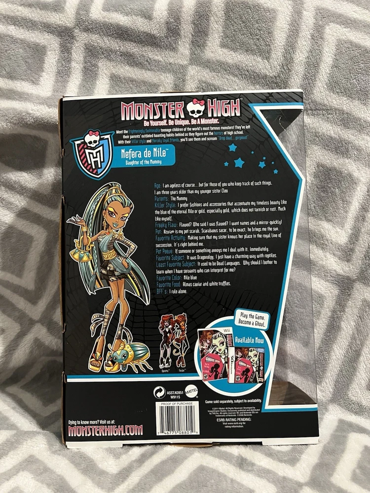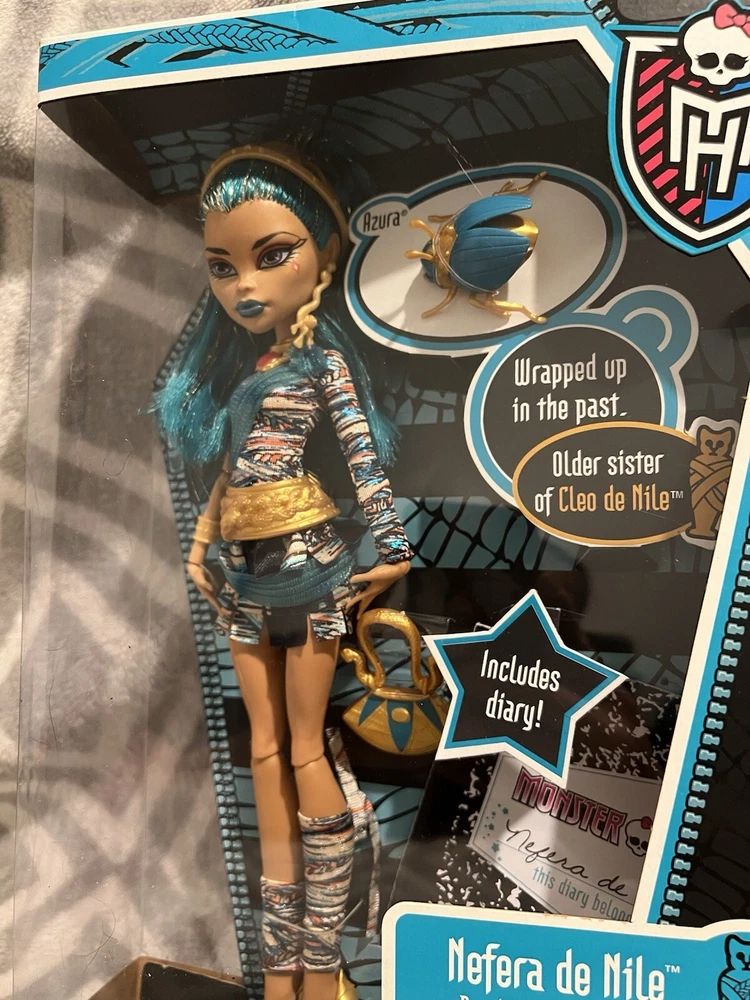 Nefera De Nile Monster High 2011 Release New In Box Comes from a smoke free home No shelf wear Boxes in almost perfect condition . Does had a slight imperfection on the back bottom corner. See images. Perfect for any monster high collector!