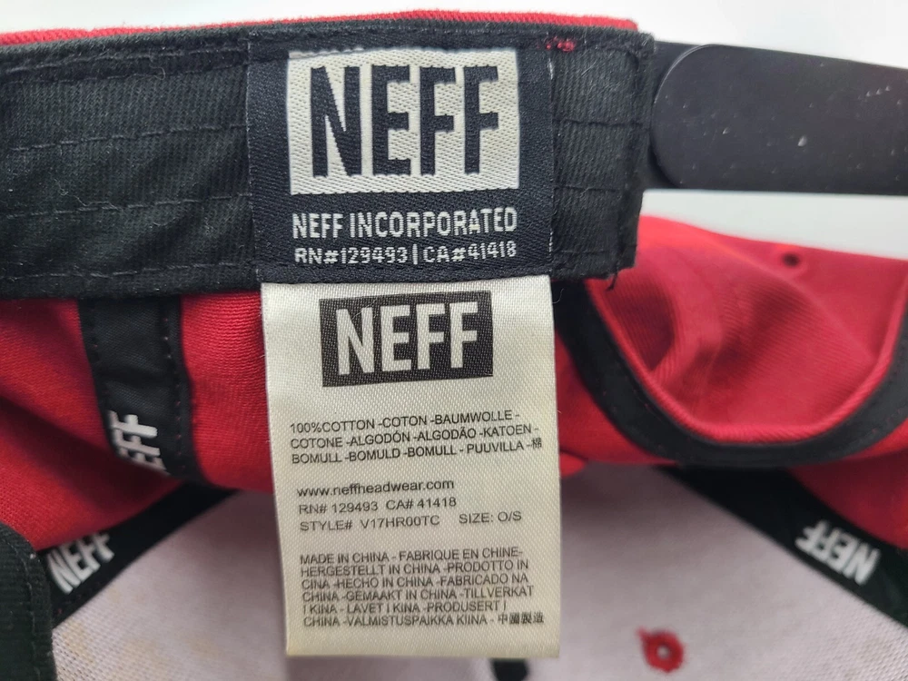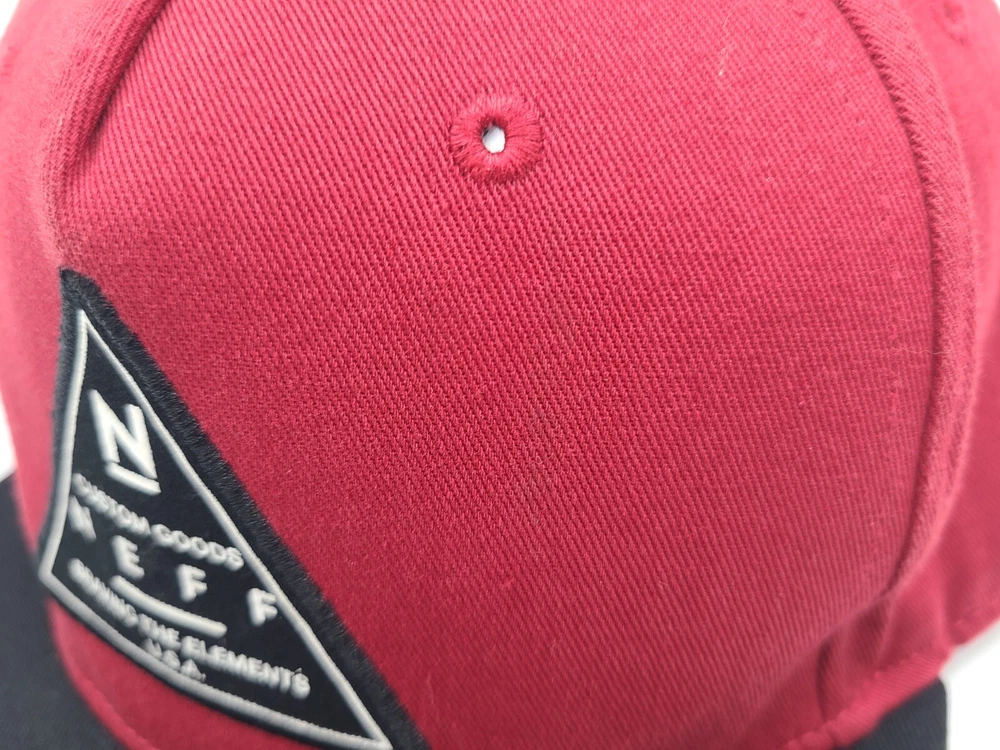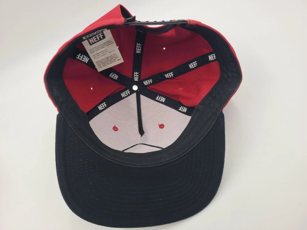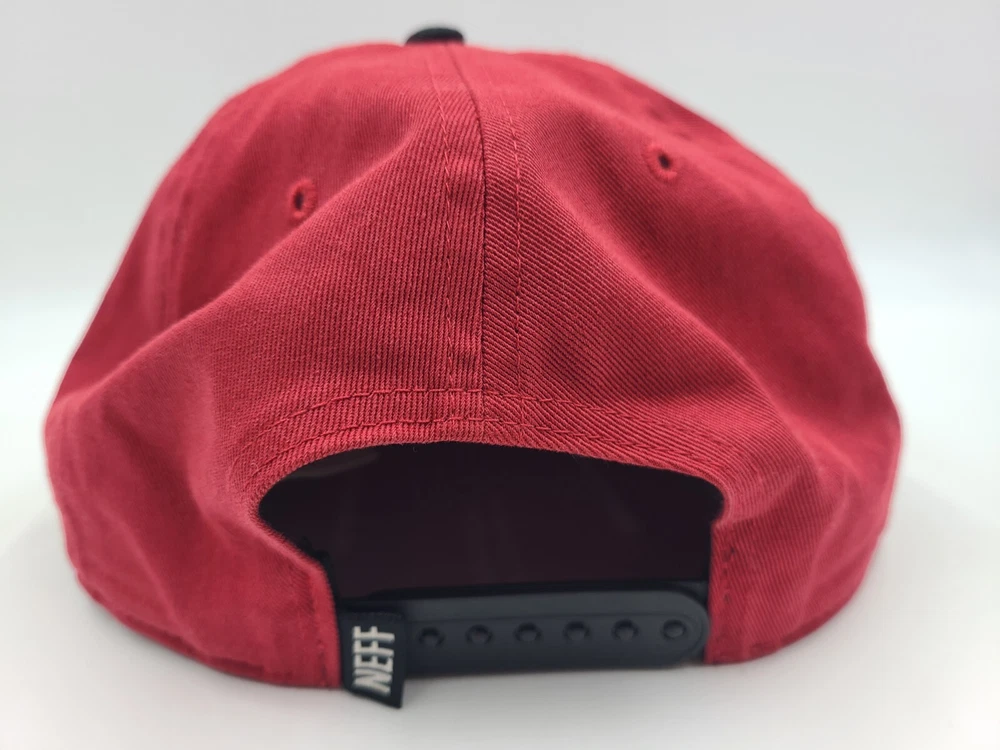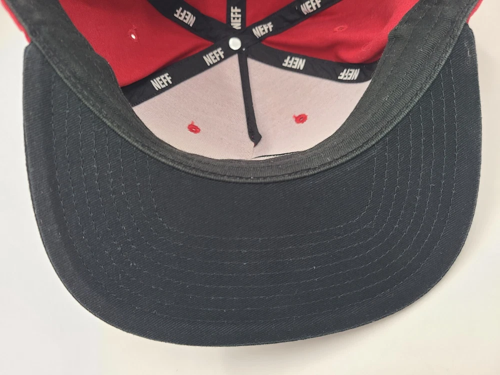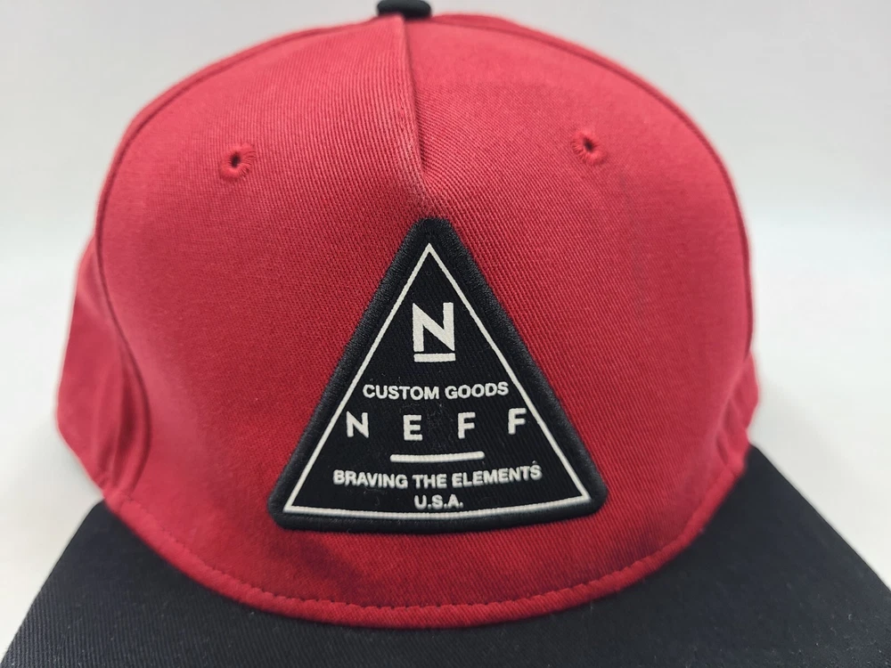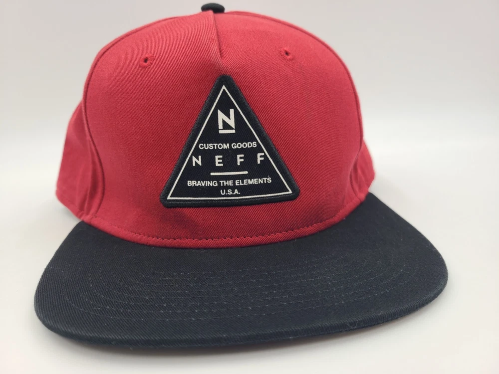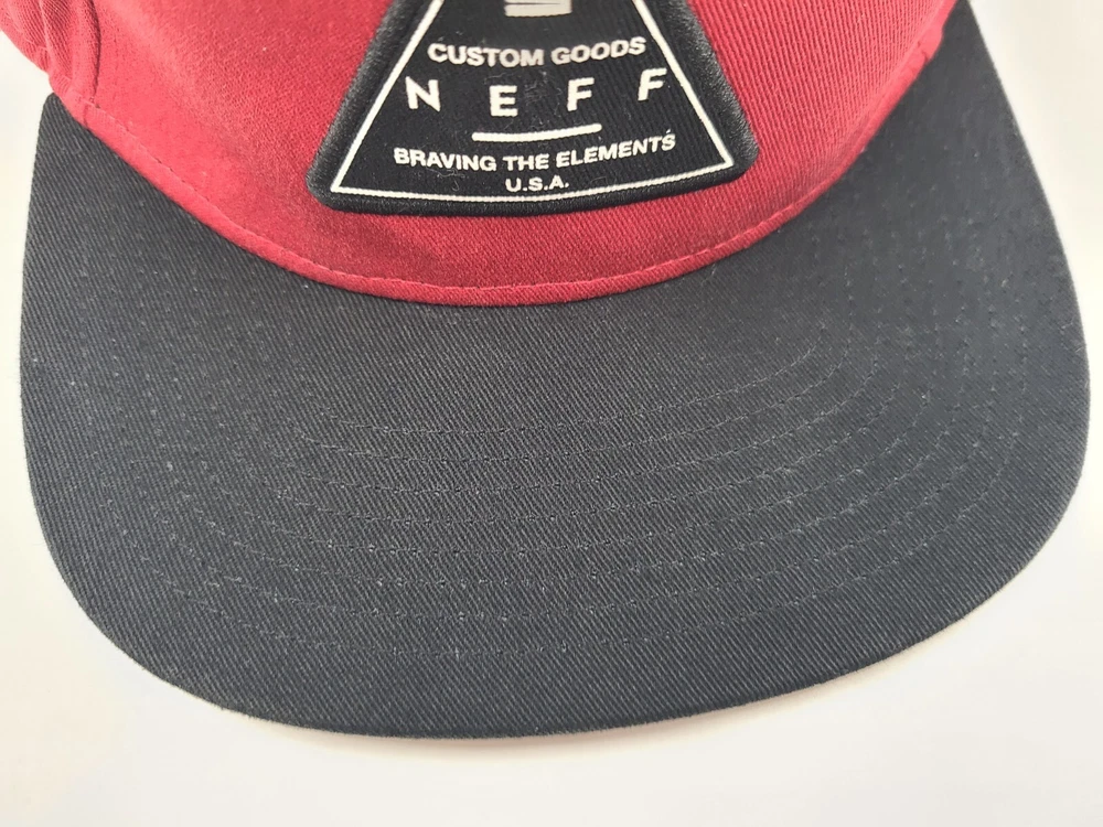 Has some stains on the front as seen in photos. Neff Custom Goods Braving The Elements USA Snapback Hat Cap Men Women Red Black. EACH ADDITIONAL HAT PURCHASED IS ONLY $1 ADDED SHIPPING!