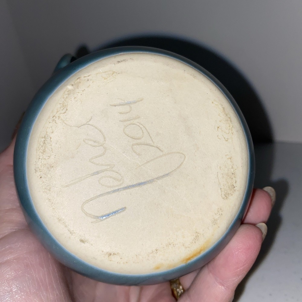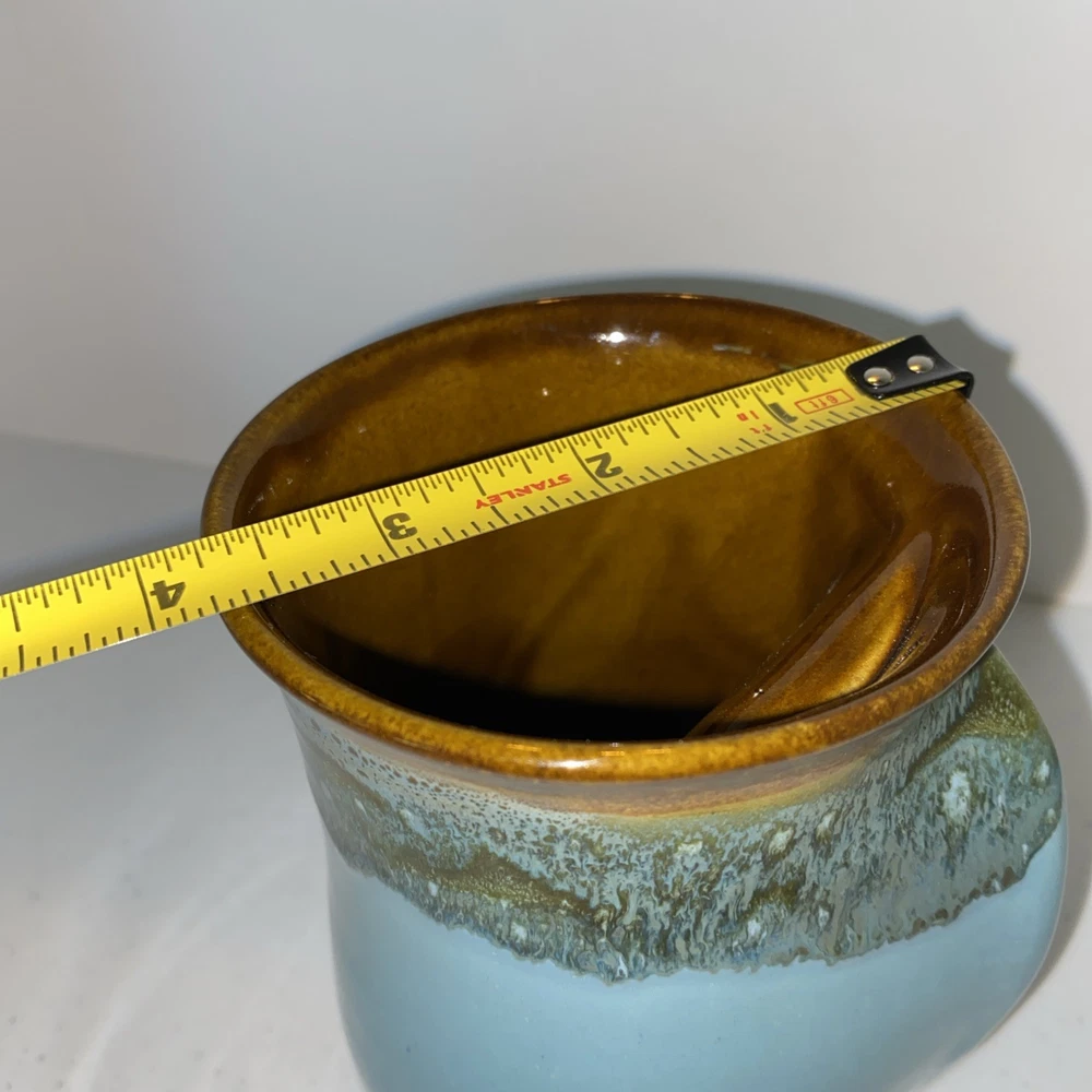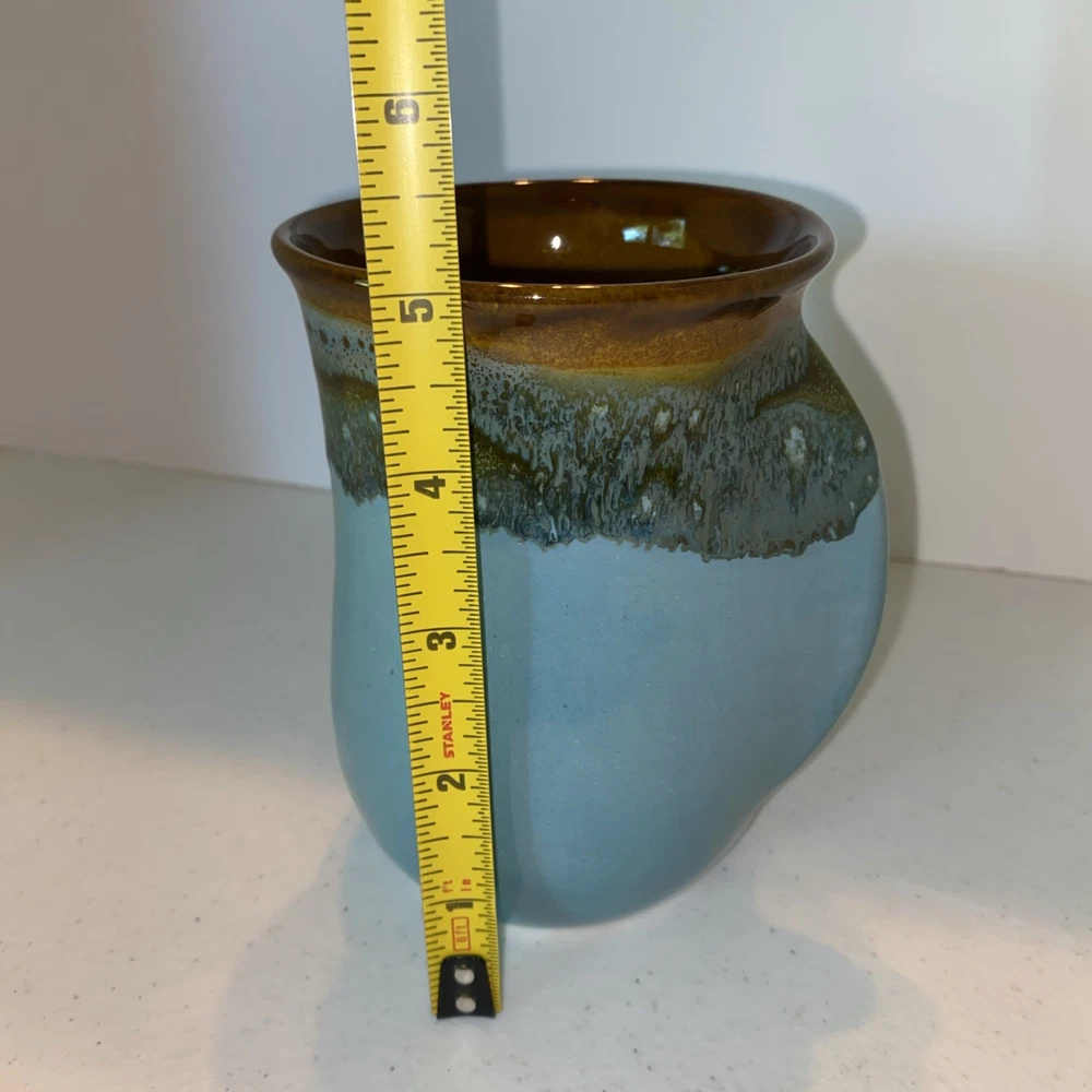 $ 4.75Neher Pottery 2008 Handmade Teal Brown Drip Hand Warmer Mug Set of 6 Signed