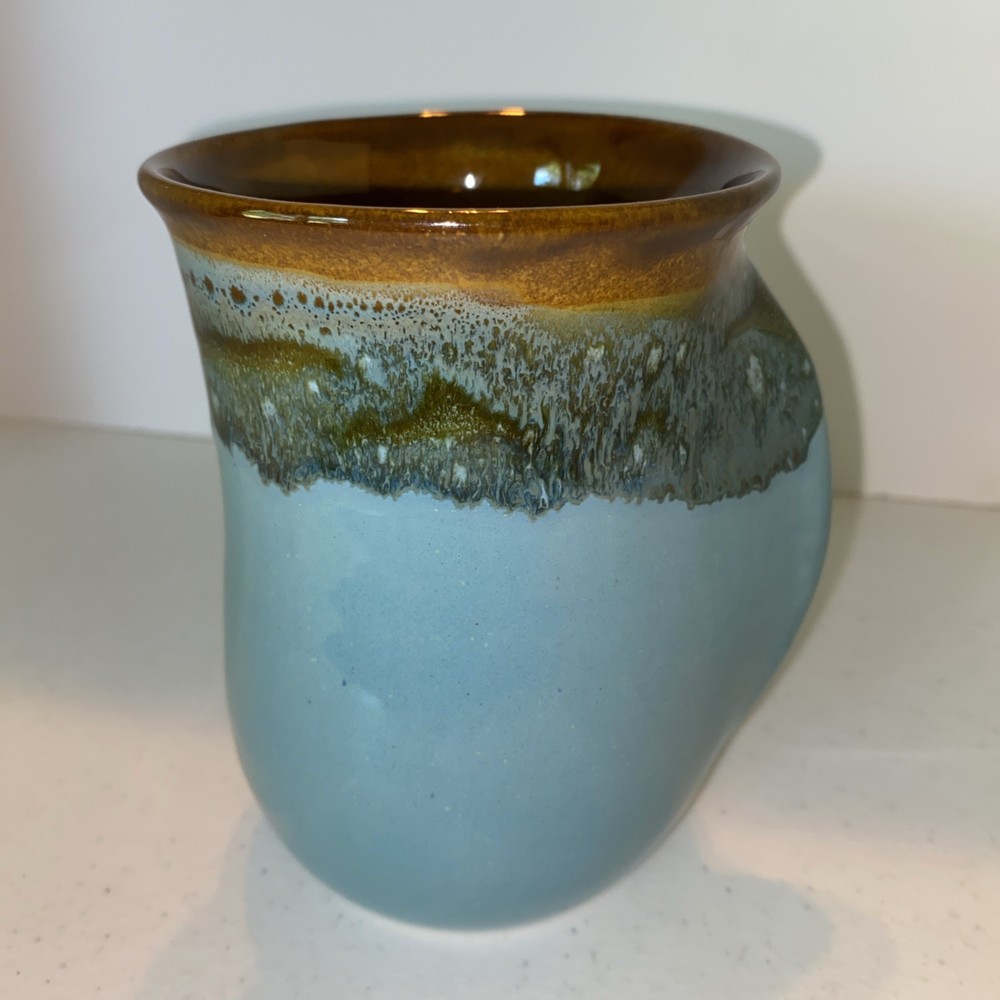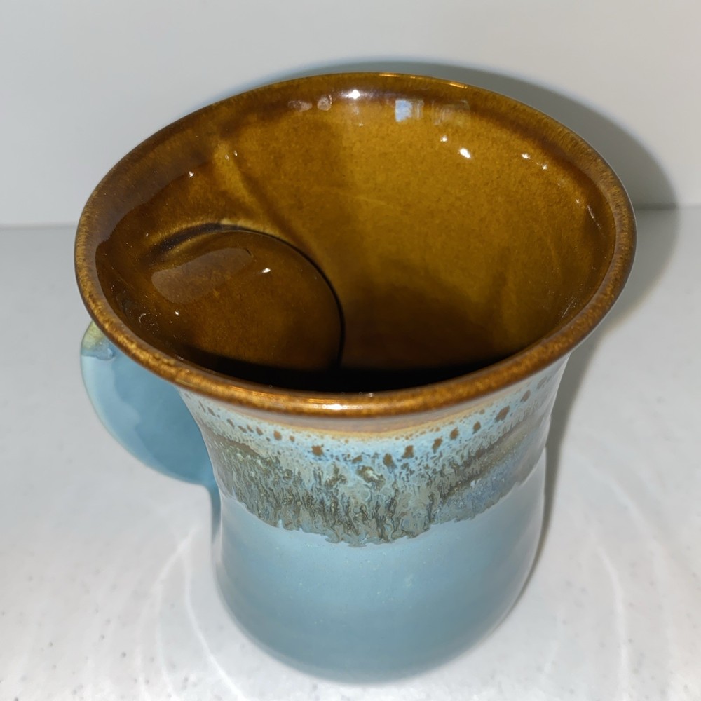 HomeNeher Pottery Left Handed Blue Brown Drip Glaze Hand Warmer Mug 2014 Signed