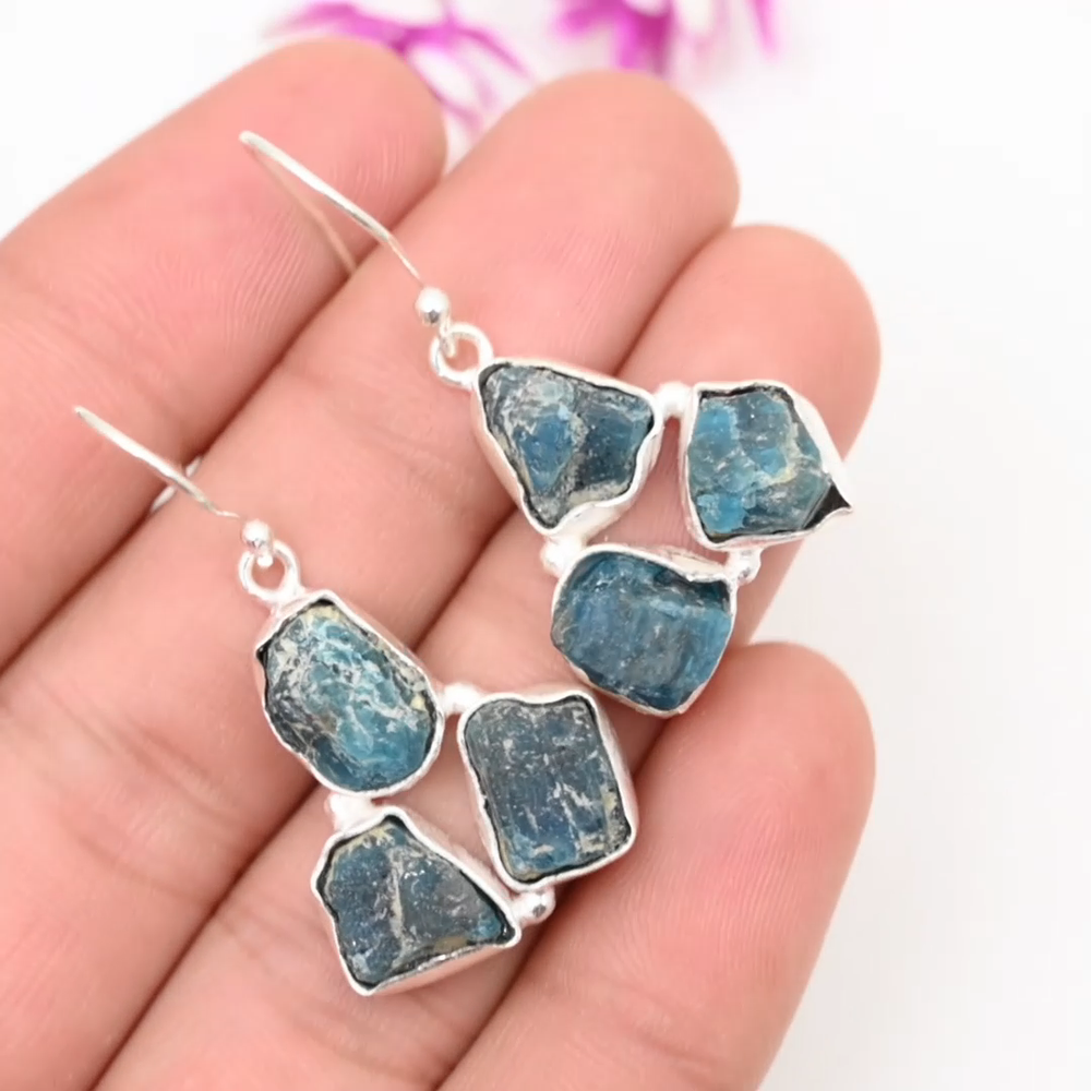 HomeNeon Blue Apatite Sterling Silver Drop Earrings Handmade Jewelry Gift for Her
