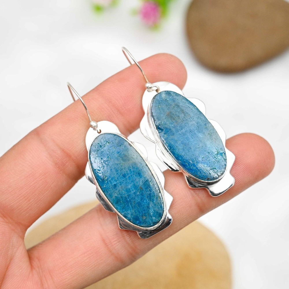 HomeNeon Blue Apatite Sterling Silver Earrings Handmade Jewelry Gift
