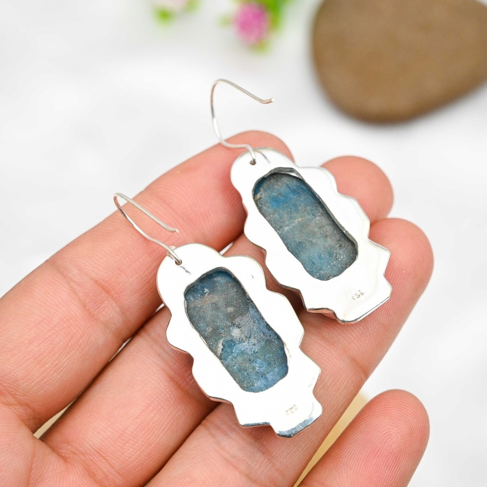 Main Stone Creation:NaturalMain Stone Treatment:Not EnhancedNumber of Gemstones:2Colored Diamond Intensity:N/AEar Area:LobeNumber of Diamonds:N/ADiamond Color Grade:N/AShape:Same As PictureTheme:Beauty, Bohemian, Ethnic, Halloween, LoveCountry/Region of Manufacture:IndiaMain Stone:Neon Blue ApatiteMain Stone Shape:OvalMain Stone Color:BlueCollection:HandmadeCut Grade:ExcellentStyle:Dangle/DropItem Length:1.96"Seller Warranty:YesSetting Style:BezelDiamond Clarity Grade:N/AClosure:HookMaterial:Stone, GemstoneType:EarringsCountry of Origin:IndiaSecondary Stone:Neon Blue ApatiteOccasion:Anniversary, Birthday, Christmas, Engagement, Father's Day, Mother's Day, Valentine's Day, WeddingBase Metal:Sterling SilverMetal Purity:925Total Carat Weight:10 carat and aboveBrand:HandmadeCertification:N/AMetal:Sterling SilverColor:Silver