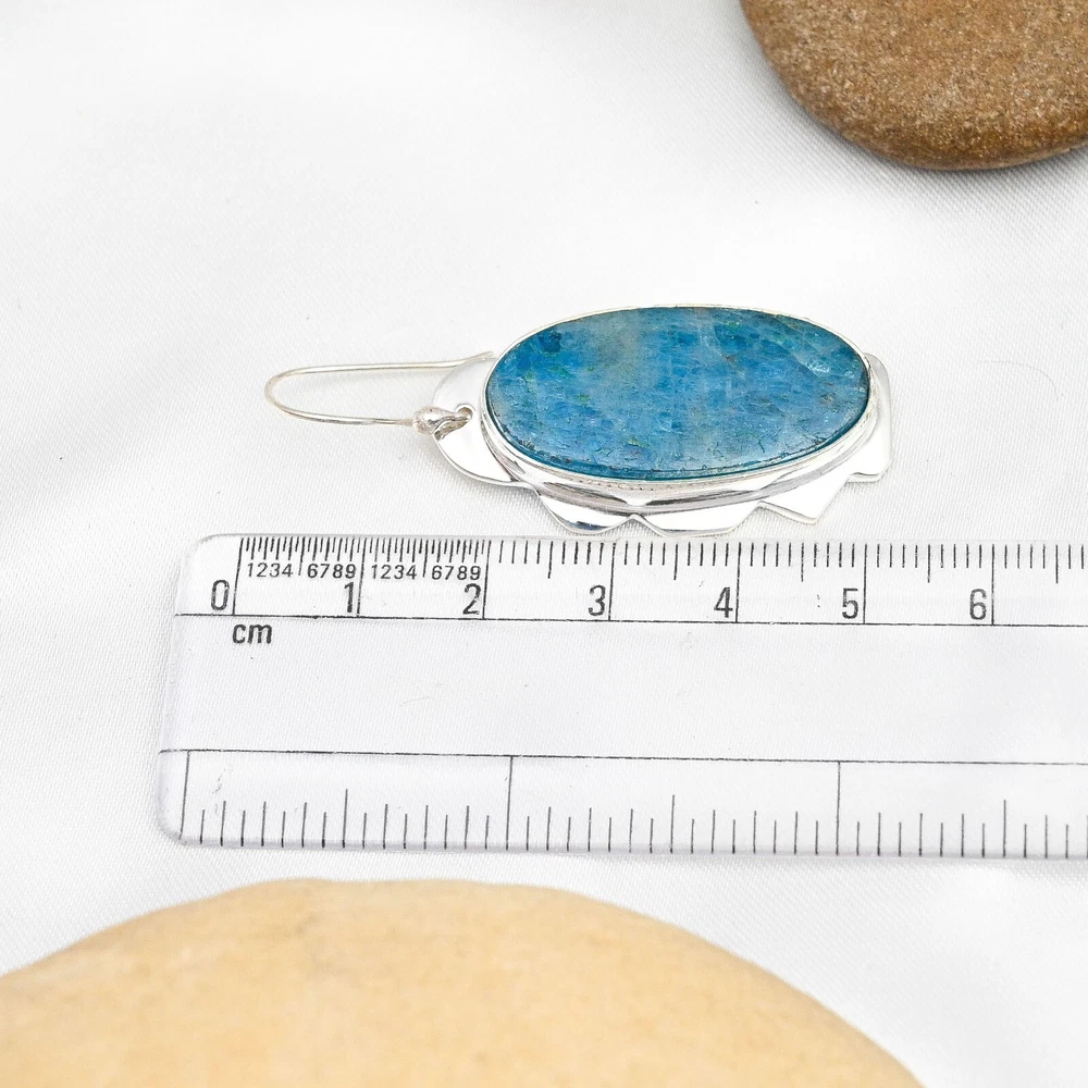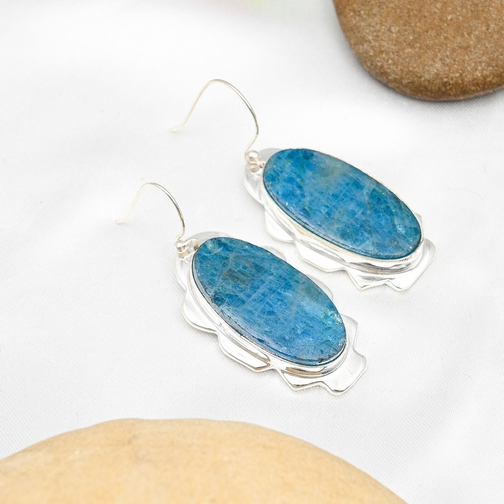 Neon Blue Apatite Sterling Silver Earrings Handmade Jewelry Gift