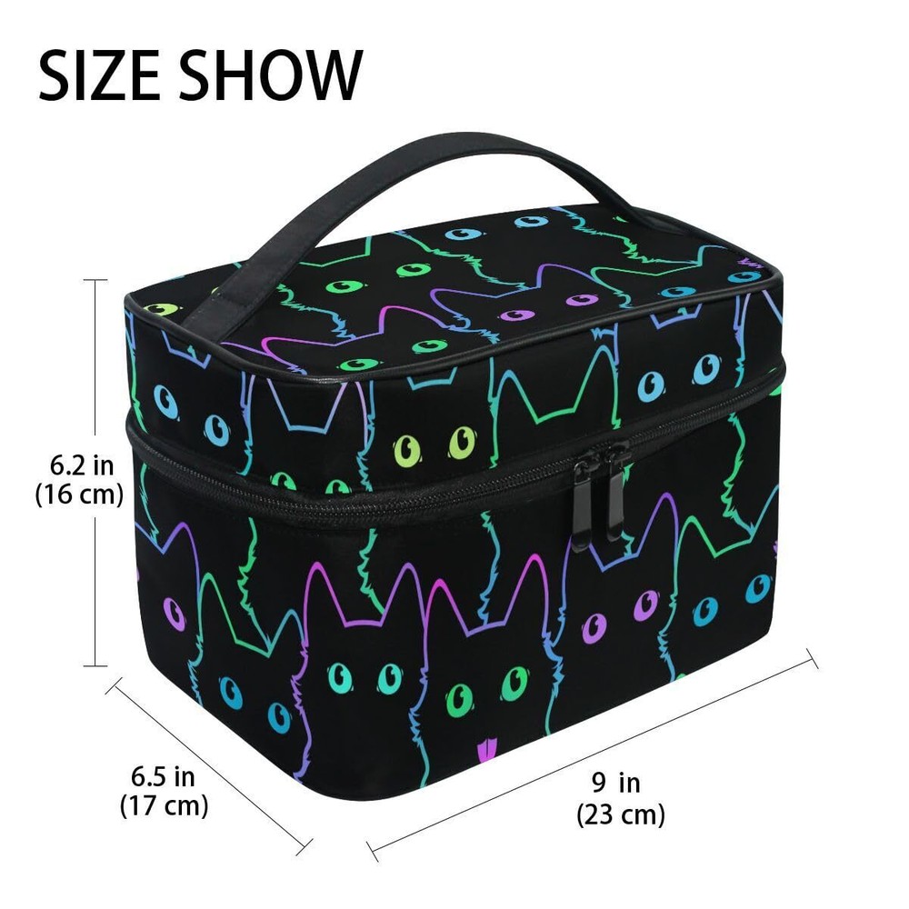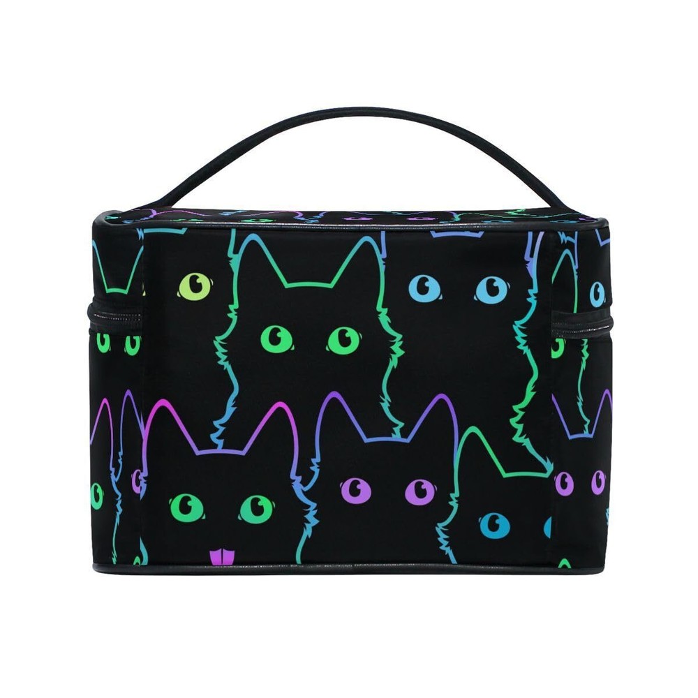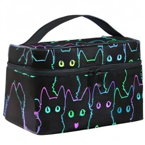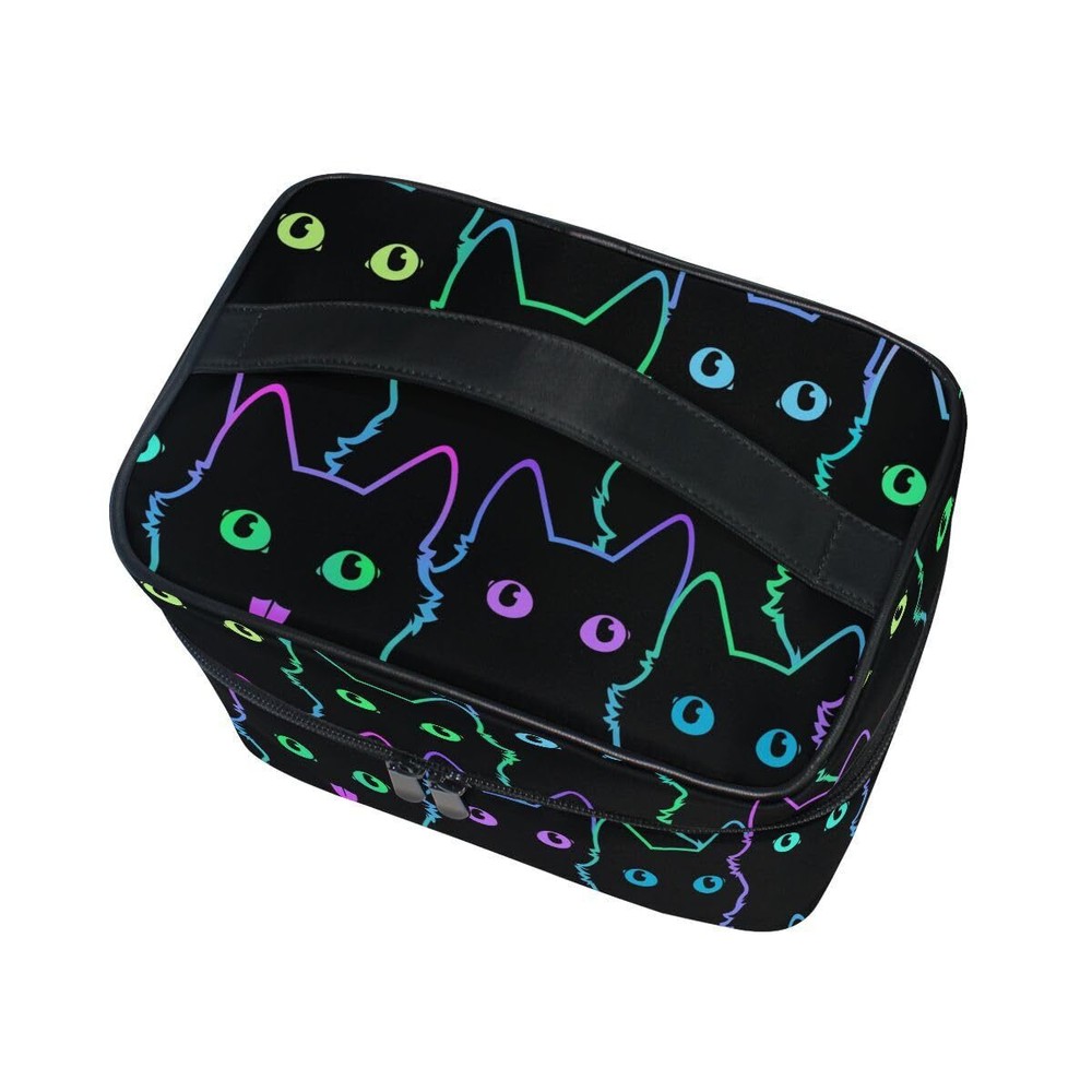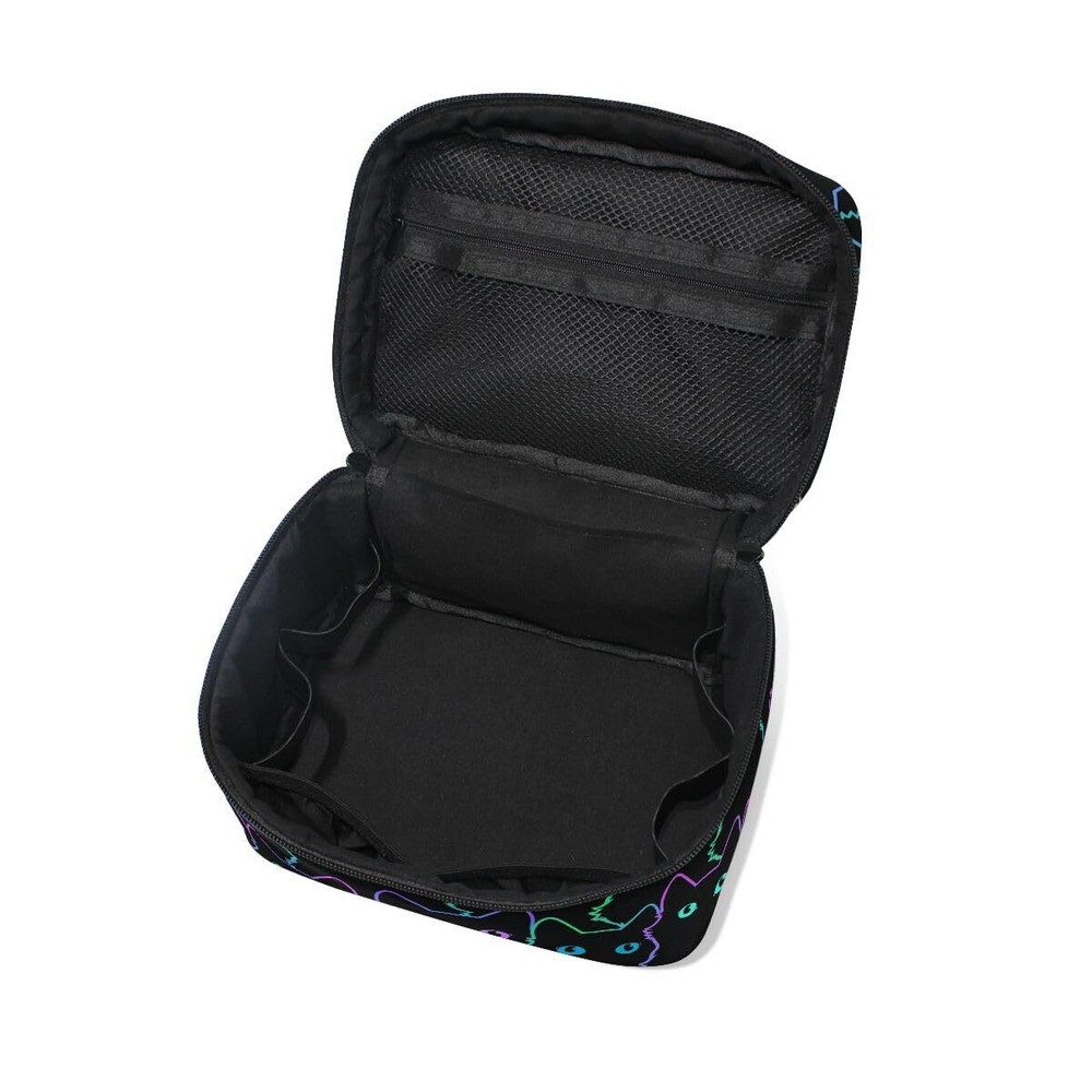 Neon Cat Cosmetic Travel Makeup Organizer Bag Portable Train Case