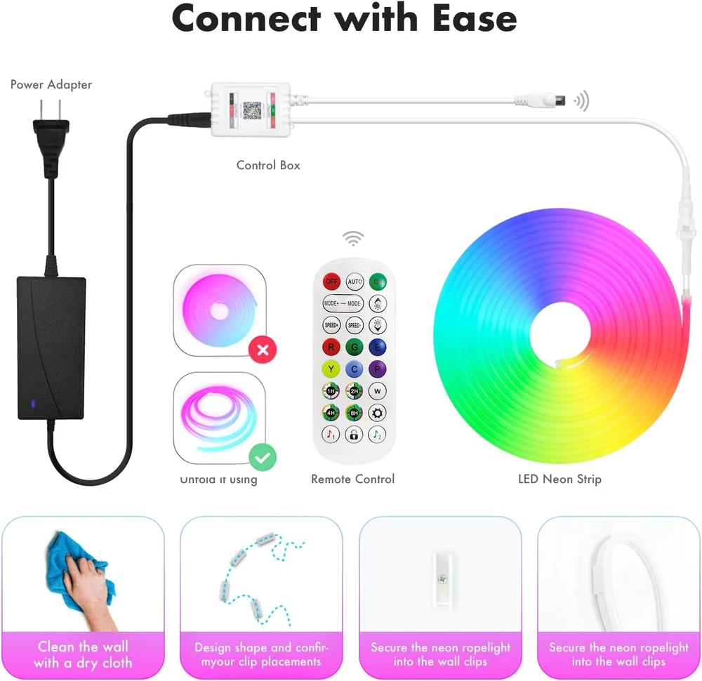 Store New Arrivals Add to Favorite View Feedback Contact Neon Rope Light,16.4Ft ICRGB LED Strip Lights,Ip67 Waterproof Flexible LED Lights,Control with App/Remote,Music Sync Game LED Neon Strip Lights,For Gaming Room Living Outdoors Decor Description Item model number YYKJ-612HCNHLY5M Light Source Type LED Style Modern Number of Items 1 Power Source Corded Electric Number of Light Sources 150 Control Method App Theme Music Batteries Included? No Controller Type Remote Control Connectivity Protocol Bluetooth Wireless Communication Technology Bluetooth Material Copper Package Dimensions 8.46 x 8.19 x 2.05 inches Included Components 1 x Remote Control, 1 x User Manual Indoor/Outdoor Usage Indoor Light Color Neon Water Resistance Level Waterproof Batteries Required? No Item Weight 1.34 pounds Connectivity Technology Bluetooth Special Features Timer Special Feature Timer Part Number YYKJ-612HCNHLY01 Color Neon Wattage 5 watts Voltage 110 Volts Product Description Product Details Smart home light,make life more colorful Over 16 million colors provide endless decor options,Multifunctional ICRGB led strip lights for whole household will look more stunning to decorate your vibrant life. sfG PACKAGE INCLUDED 1 x 32.8FT ICRGB LED Neon 1 x 24V power supply 1*controllers 1* Remote Control with Timer Function 1*retaining buckle 1*user manual Product Specifications led rope lights Type:3535SMD 108Leds/3.28FT Life Expectancy:10000 Hours Input: AC100-240V Output:DC 24V Beam Angle:120 Working Temperature:-20℃~+45℃ Remote Distance: within 5M Our neon light strips use high-quality LED light sources, which are energy-efficient and have a long lifespan. The IP67waterproof design effectively prevents short circuits or moisture damage caused by rainwater, extending their service life. Moreover, our neon light strips have excellent durability and shock resistance, withstanding the challenges of external environments. light strips can meet your needs Timing Setting Lights for bedroom can auto open/close at set time Music sync You can watch your music spill over from your speakers into the room around you in colorful, dynamic light. Immersive Lighting Effects Personalized vibrant lighting for larger spaces ABOUT US We offer the best prices around on high quality products. Our E-store includes media such as books, movies, music and games while offering electronics, toys, sporting apparel, clothing, tools, general home, garden items and more. SHIPPING We are always working hard to ensure your package arrives as soon as possible. Please understand that some factors like weather, high postal traffic, and the performance of shipping companies are outside of our control. We offer free shipping to the lower 48 states and ship within 2 business days of payment, usually sooner. We do not accept P.O. Boxes. Please provide a physical address. RETURNS We offer a 30-Day Return Policy on items which you are not completely satisfied with. You have the option for a full-refund or an exchange of the item. No returns are available on items shipped outside of the USA. PAYMENT We accept PayPal. CONTACT US This page content is yet to come Please ad us to your favorite seller and visit again later Thank You CUSTOMER SATISFACTION We try our very best to make sure every customer is completely satisfied. If there's a problem, message us! We're happy to help