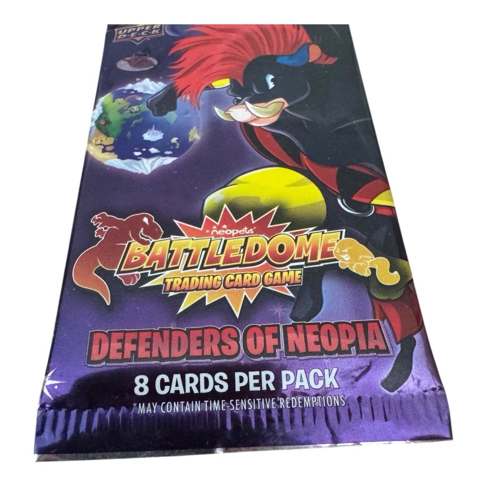 Brand new and sealed Neopets Battledome Trading Card Game booster pack by Upper Deck. This is from the 2024 release, Defenders of Neopia set. Great for collectors and fans of the Neopets universe. • Set: Defenders of Neopia • Year: 2024 • Condition: Factory sealed, new • Contents: 8 cards per pack (random assortment) • Manufacturer: Upper Deck • Licensed by: Neopets / The Upper Deck Company • Age: 6+ • Made in USA