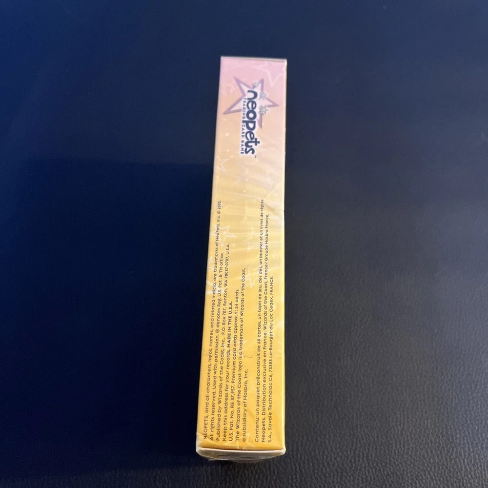 Neopets Trading Card Game Two-Player Starter Set. New box sealed. Includes a bonus 8-card booster pack. Let us know if you have any questions! Please see the pictures for additional details. Note: There is a plastic hanger on the back of the box as the pictures show. Please see the pictures for exactly what you will receive. There are some dents, marks, and other imperfections on the box and outer plastic seal including discoloration . This is unopened and sealed.
