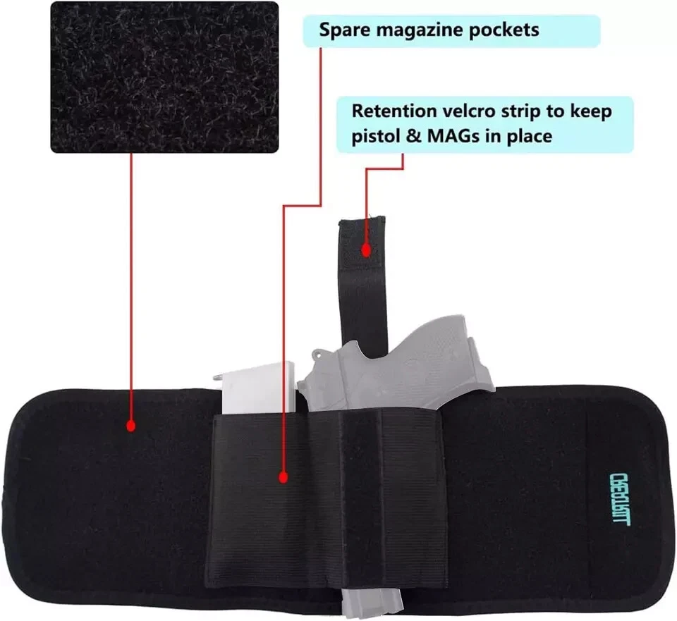 About this item BRILLIANT COMFORT DESIGN: Extra plush padding for added comfort, retention velcro strap to keep pistol of choice in place QUALITY MADE: Comfortable neoprene material which is durable and non-toxic/insipidity, safe and easy to wear directly against your skin SIZE:Free 19 inch length x 5 inch width, adjustable ankle holster to conceal your firearm fits all compact/subcompact pistols and revolver SPARE MAGs POUCH: Accommodates different sizes magazines; carry backup magazines for fast access, include adjustable retention straps for security RIGHT/LEFT HAND DRAW AVAILABLE: Put it inside left leg for Right hand model, on right leg for left hand; Fits Snub nose Revolvers, Glock 26, Glock 27, Glock 30, Glock 42, Glock 43, S&W Shield, Sig P239, etc. and Similar Sized Weapons