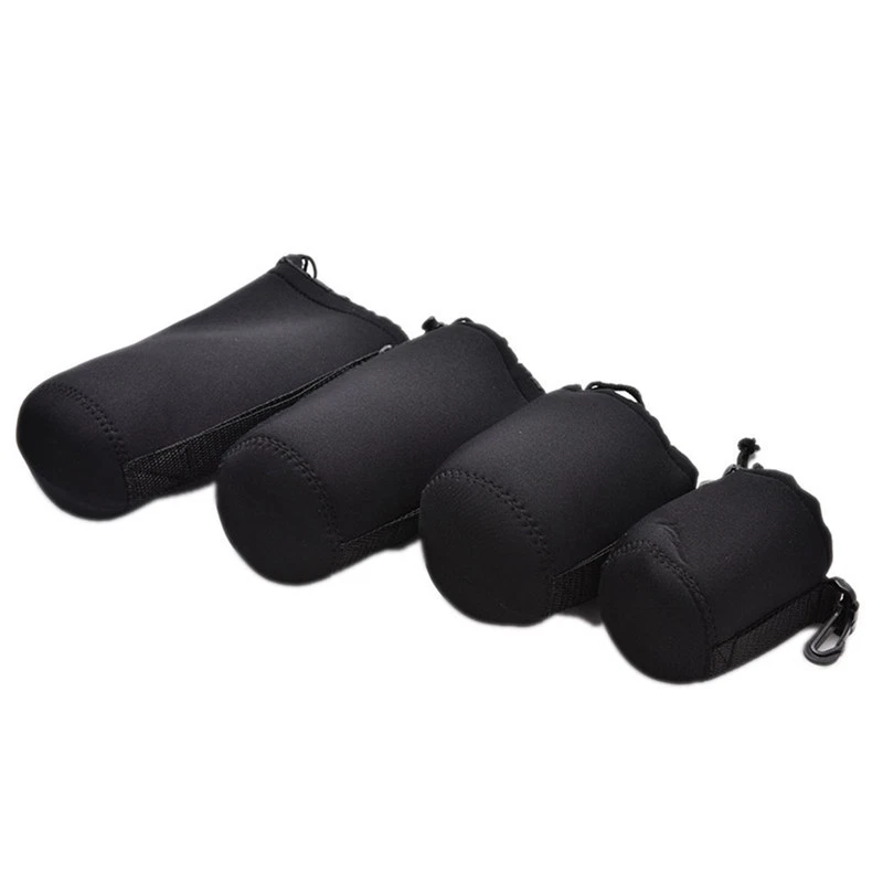 Description This lens pouches are made of neoprene, the same material used to protect scuba divers from tharsh sea This neoprene lens pouch is very soft and elastic, but durable to hold and protect your lens. 3mm thick (roughly) Neoprene - provides great protection and shock absorption for your lenses. Belt Loop - allows you attaching the pouch to your belt, for convenient carrying. Hook - allows you attach the pouch to anywhere with a ring (such as camera bags and backpacks). Specifications: Model : Neoprene Lens Pouch / Case (S M L XL) Material: Water-resistant neoprene Color: Black Diameter x height S(80mm x 100mm) M(95mm x 140mm) L(100mm x 180mm) XL100mm x 240mm) Package includes: 1 x Neoprene Lens Pouch / Case Preview: