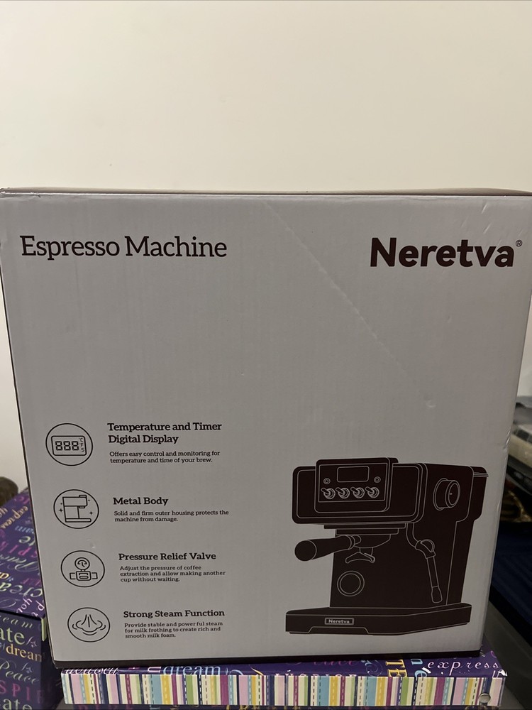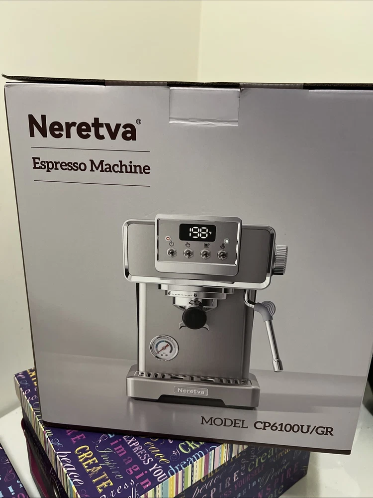 Neretva Espresso Machine with Milk Frother, Medium, Stainless-CP6100U/GR (New). Condition is New. Shipped with USPS Ground Advantage.