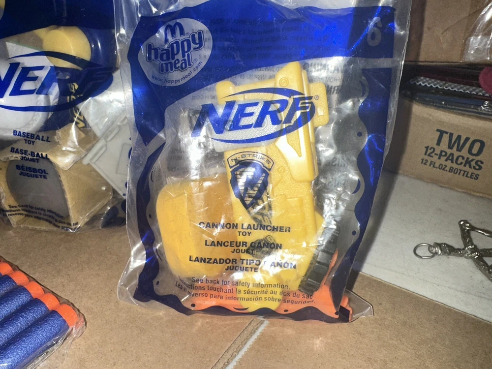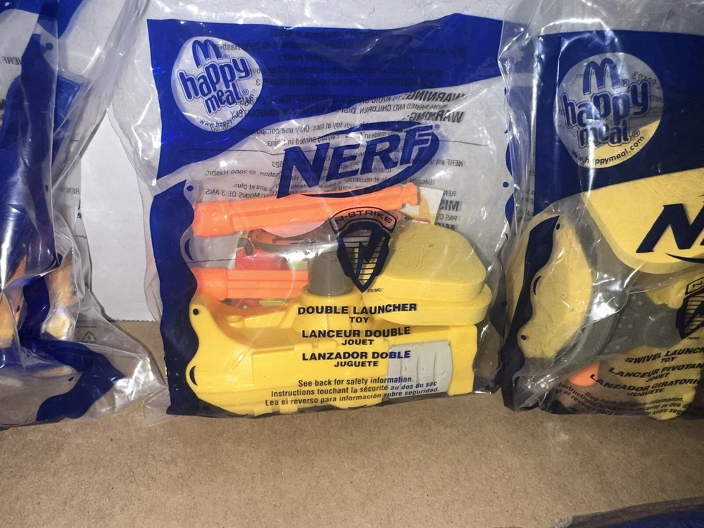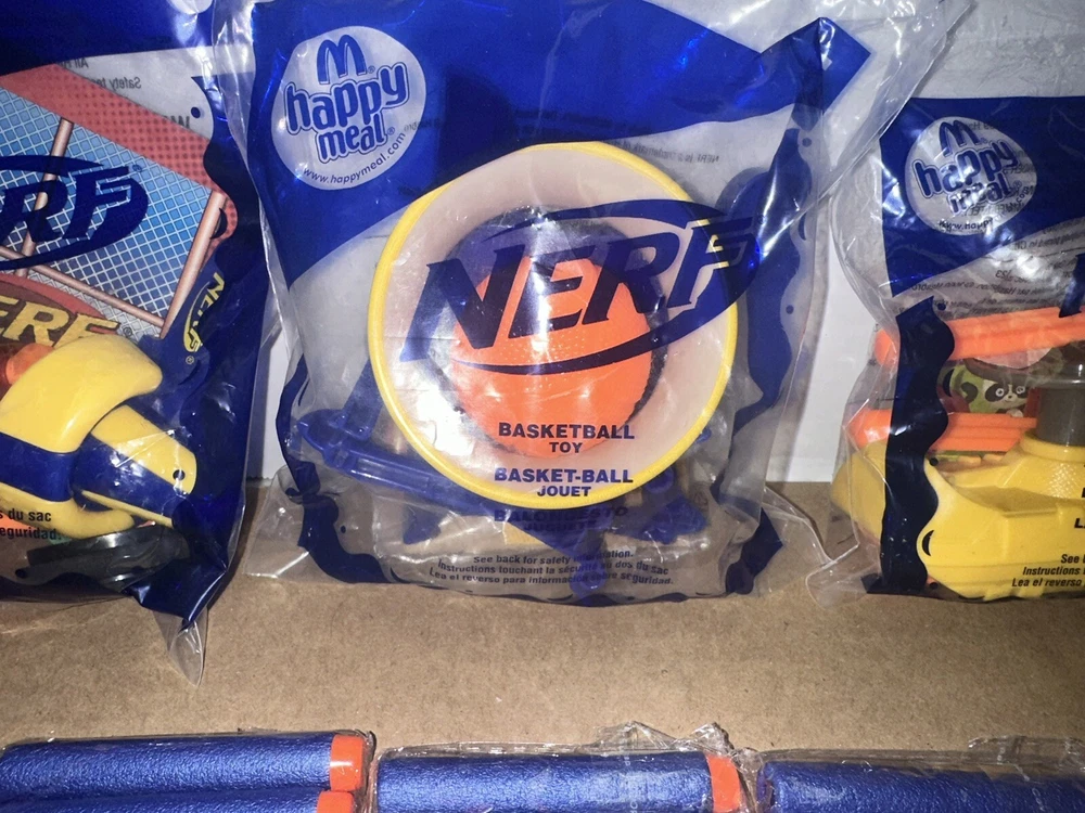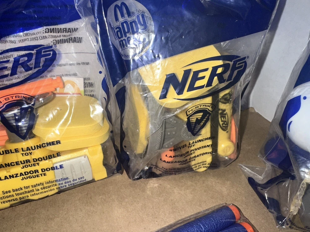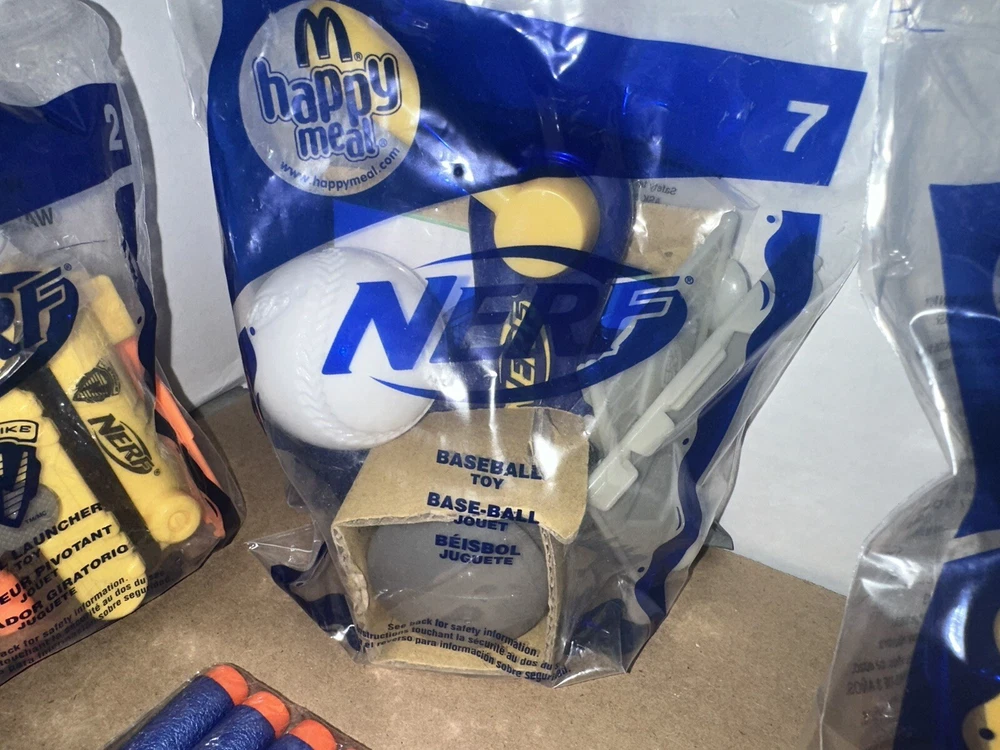 Complete set of eight McDonald’s happy meal Nerf toys And we have six packages of darts Non-smoking environment Make sure to give us a follow. And check out our store for more items like this.