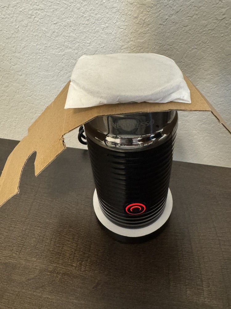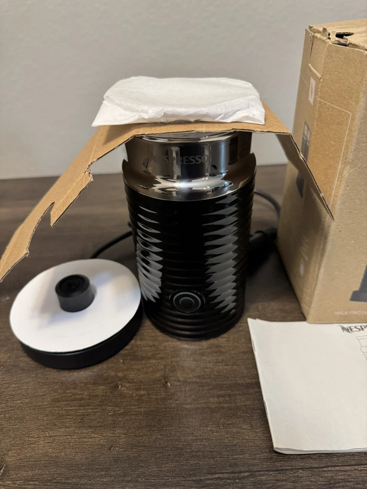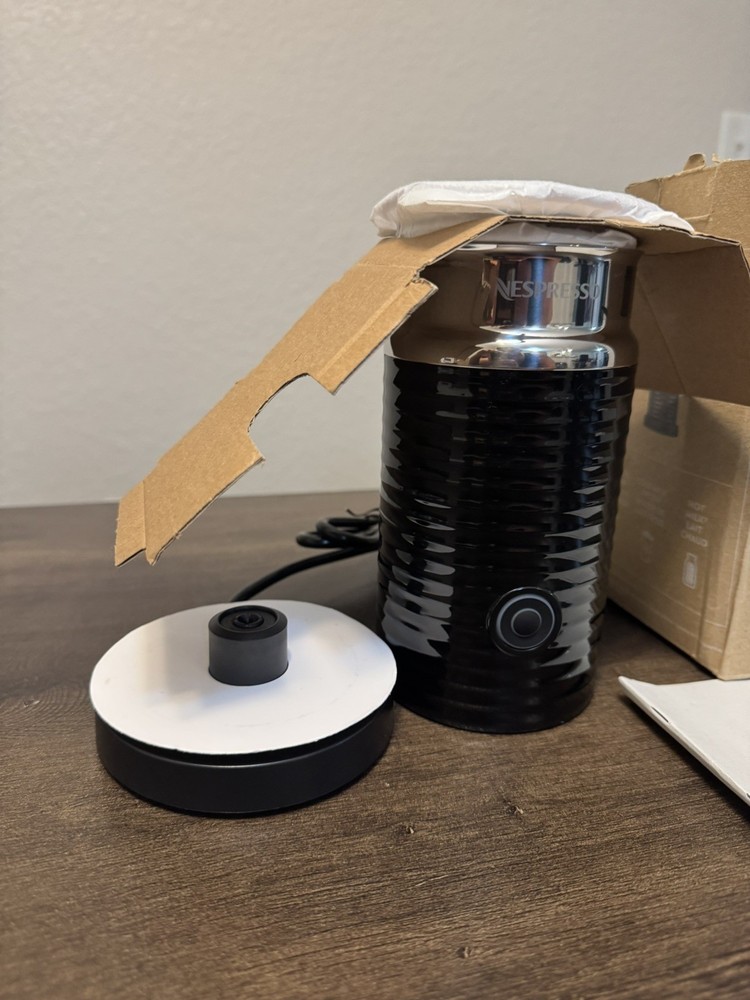 Description Nespresso 8 fl oz Milk Frother One-Touch Non-Stick Black Aeroccino 3 – NEW Never used, Open box!