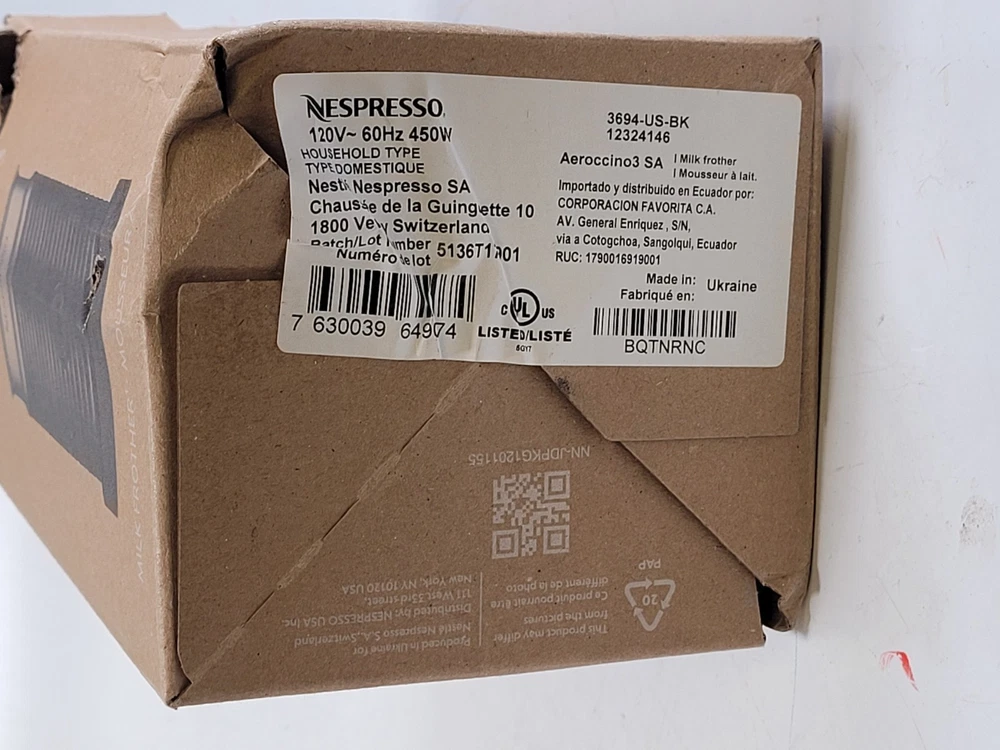 Nespresso Aeroccino XL Milk Frother: Electric Black Frother Wand, 13.5oz The Nespresso Aeroccino XL Milk Frother is an electric frother wand with a capacity of 8.5 ounces, perfect for creating creamy foam for your favorite coffee or espresso drinks. With a sleek black design and a power range of 300-599 W, this frother is easy to use and clean. It is made of durable plastic and has a voltage of 120V. The Aeroccino3 model by Nespresso is designed for convenience and efficiency, making it a must-have for any home barista looking to elevate their coffee experience. · · · SHIPPING · · · Get free shipping on your order! We ship via reliable carriers like UPS, FedEx, and USPS We ship to the continental US (excluding PO boxes and APO/FPO addresses) Orders are usually shipped within 3 days or less. Items valued at $50 or more are subject to signature request. High value/special items are recorded with images by their unique serial number. Tracking number is sent personally to each customer. · · · RETURNS · · · Returns are accepted within 7 days of purchase Items must be in original condition and packaging- NO EXCEPTIONS · · · PAYMENTS · · · We accept all payment methods through eBay's payment system Please pay promptly after winning an auction so we can ship your item faster · · · FEEDBACK · · · Customer satisfaction is a top priority for us. If you have any issues with your order, please let us know. We will make every effort to resolve any problems and ensure you are satisfied. · · · Contact US · · · We appreciate your business. If you have any questions, please message us through eBay and we will respond within 24 hours on weekdays. Feel free to browse our eBay store for other available items. Thank you again for choosing to shop with us! · · · Suggested Products · · · CODY RHODES - WWE Elite Collection, RAW Top Picks, NEW 2025 $24.00 Star Wars The Black Series ISB Tactical Agent & Director Orson Krennic-Lot Of 2 $34.00 G.I. Joe Classified Series #157, Christopher "Law" Lavigne & Order $21.75 NECA Ben Cooper Art The Clown Terrifier Figure NEW! $23.75 DJI - Osmo Action 4 Pro 4K Action Camera Only - Pre Owned $180.00 Munchkin Safety Toddler Bed Rail - Fits Full To Queen Size Mattress- Brand New $50.00 Add suggested items to your listings - Check it out on 3Dsellers.com eBay listing template by 3D sellers.com - Try for Free!