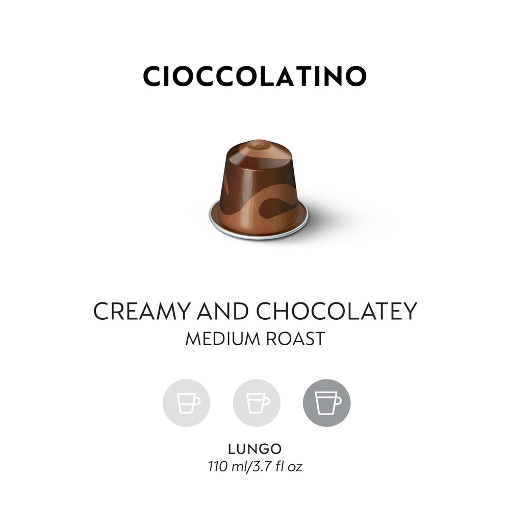 Nespresso Capsules Original Line, Cioccolato, Medium Roast Espresso Coffee, 50 Count Espresso Coffee Pods SENSORIAL PROFILE: This flavored Nespresso blend delights with its elegant dark chocolate flavor, complemented by notes of biscuit cereal MEDIUM ROAST: Split roast, the Brazilian coffee is lightly roasted to keep it smooth and with its malted cereal notes intact, while the majority of the Colombian beans get a short roa A fine grind adds a glimmer of intensity to this harmonious coffee SAVOR WITH MILK: As a cappuccino this coffee gains creaminess, while still displaying its classic Dark Chocolate note, combined with almond, caramel and vanilla SUSTAINABILITY FIRST: As a certified B oration, Nespresso meets the highest standards of verified social and environmental performance, joining a global movement using business a force for good and reviving lost coffees to fully recyclable capsules MACHINE COMPATIBILITY: Nespresso Original pods are not compatible with Vertuo Line machines Shipping We offer FREE shipping on all orders! We ship within Three business days of payment, usually sooner. We use a selection of shipping services such as UPS, FedEx, USPS etc. We only ship to the lower 48 states, no APO/FPO addresses or PO Boxes allowed. Local pickups and combined shipping options are not provided at this time. Return You can return a product for up to 30 days from the date you purchased it ONLY if it's in the original condition. The product cannot be used or open. Any product you return must be in the exact same condition you received it and in the original packaging. Please keep the receipt. Feedback Customer satisfaction is very important to us. If you have any problem with your order, please contact us and we will do our best to make you satisfied. Contact Us If you have any queries, please contact us via ebay. We usually respond within 24 hours on weekdays. Please visit our eBay store to check out other items for sale! Thank you for shopping at our store.