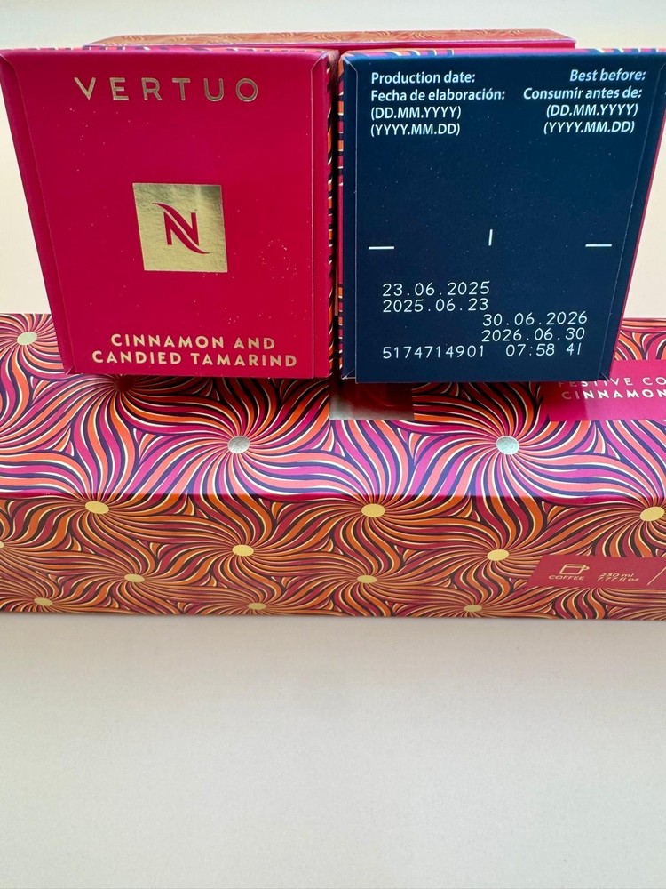 The Nespresso Cinnamon and Candied Tamarind VERTUO is a limited edition coffee pod sleeve set that offers a unique and flavorful experience with a medium roast espresso. This exclusive blend features the sweet and spicy flavors of cinnamon and candied tamarind, adding a special touch to your coffee routine. The Vertuo capsules are compatible with Nespresso coffee machines, providing a convenient and high-quality brewing experience with each serving containing less than 50 calories.