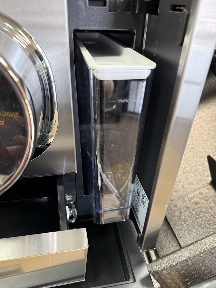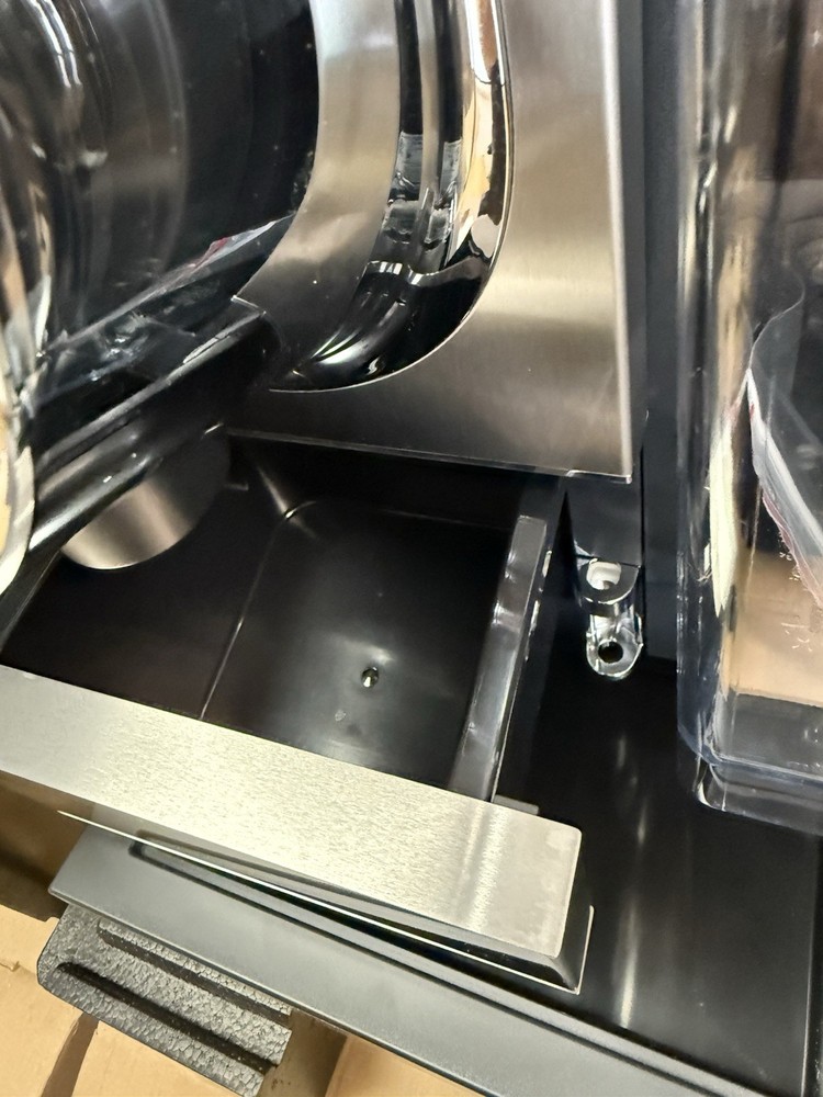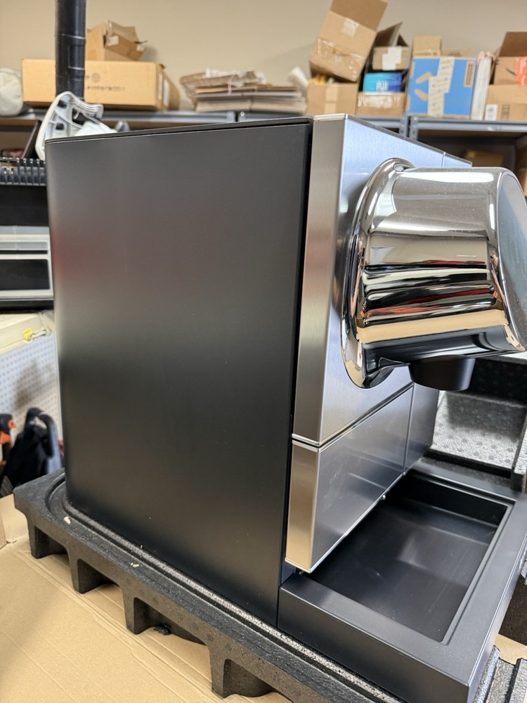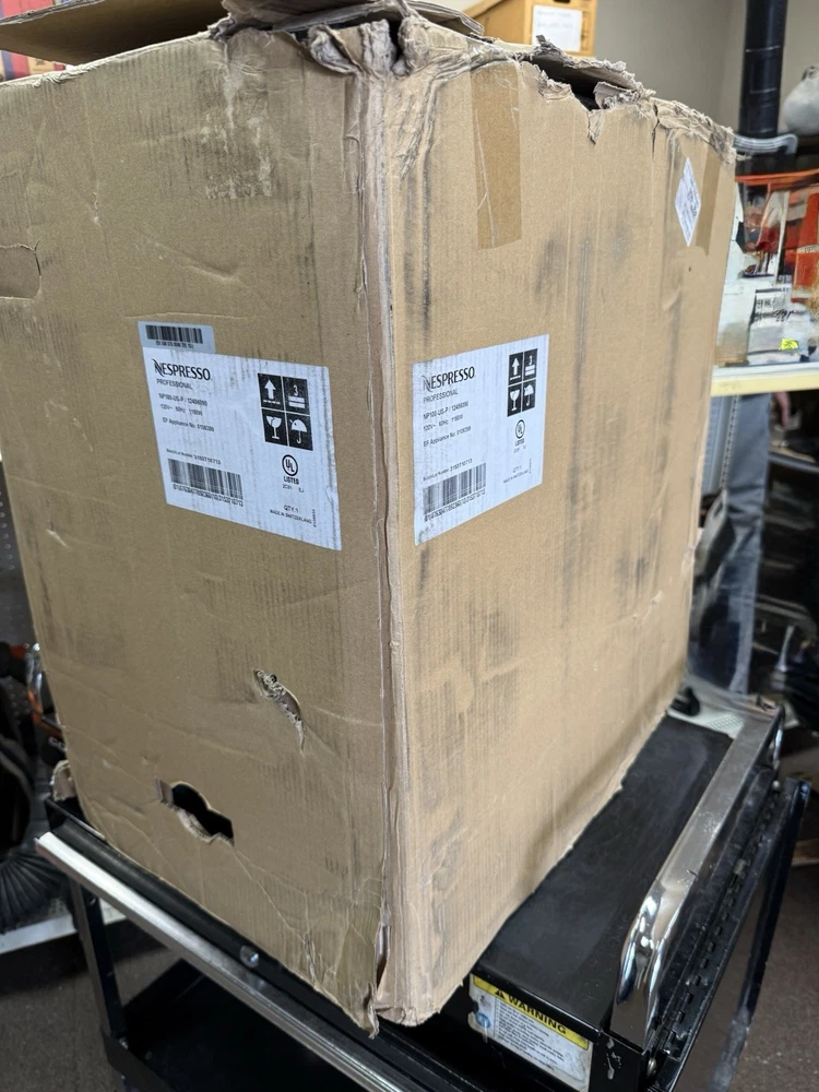 Excellent unused condition, open box. Only opened for photos and testing. Powers on. Includes drip tray, water tank, capsule storage drawer, cup support, top cup heater, water tank keys, and instructions. Does not include a water filter. Original box is torn, but item is undamaged.