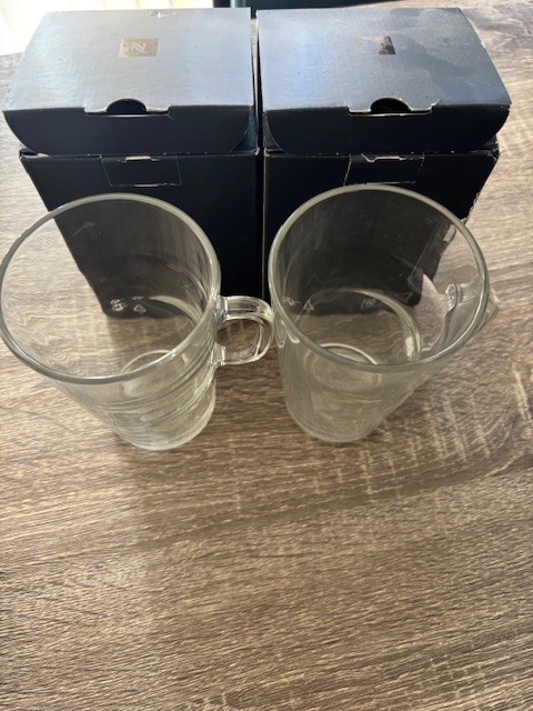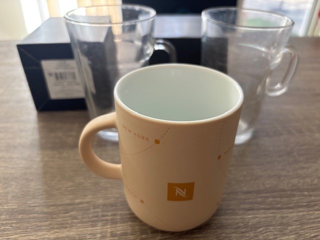 This is a collection of 3 Nespresso Mugs! 1) TWO Nespresso VIEW Collection Atelier Americano Clear Tempered Glass Coffee Mugs made in France. It offers a modern and sleek design perfect for enjoying your favorite coffee. This tapered mug stands at 5 inches tall with a width of 3.25 inches at the rim and holds 12 ounces. It is in excellent pre-owned condition with no chips or cracks. Made from clear glass, it is easy to clean and maintain, ensuring it will last for years to come. Perfect for coffee lovers who appreciate both functionality and aesthetics in their drinkware. 2) ONE Nespresso Jean Imbert Advent Calendar Limited Edition Porcelain Mug 2024 Cities a stylish and modern coffee mug perfect for all occasions. With a round shape and a solid beige color, this medium-sized mug features a capacity of 12 oz and is made of high-quality porcelain. The limited edition design showcases cities from around the world, making it a unique piece for any Nespresso or coffee collector. This unisex adults mug is a great addition to any kitchen or home decor, representing the Nespresso franchise in a timeless and elegant way.
