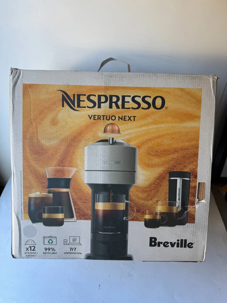 Nespresso Vertuo Next Coffee & Espresso Maker Black Programmable By Breville Description Nespresso Vertuo Next Coffee & Espresso Maker Black Programmable By Breville . Product Detail • Brand : Nespresso • Model : Nespresso Vertuo Next • Color: Black • Type : Coffee & Espresso Maker Please message me if you have any questions.