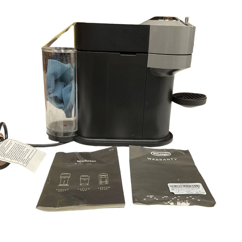 Elevate your morning routine with this sleek Nespresso Vertuo Plus by DeLonghi. Perfect for coffee enthusiasts who appreciate both style and substance. Ideal for home offices, modern kitchens, or as a luxurious addition to your breakfast nook. Features a convenient water tank and comes with original documentation for peace of mind. Includes all parts and works. Does not have box. Model: Nespresso Vertuo DeLonghi Color: Black Coffee Type: Pod Type: Pod Coffee Machine Components Included: Water Tank, Drip Tray, User Manual Type of Coffee Made: Espresso Keywords: nespresso vertuo, delonghi, coffee maker, espresso machine, pod coffee maker, automatic coffee maker, single serve, vertuo plus, modern kitchen appliance, premium coffee maker
