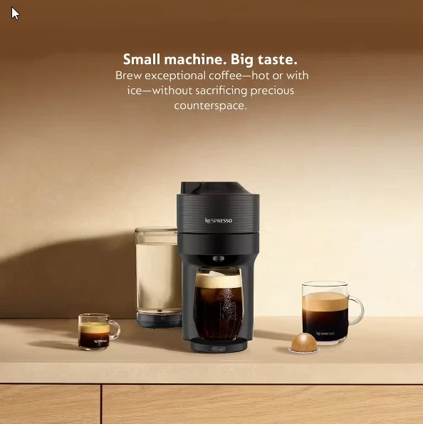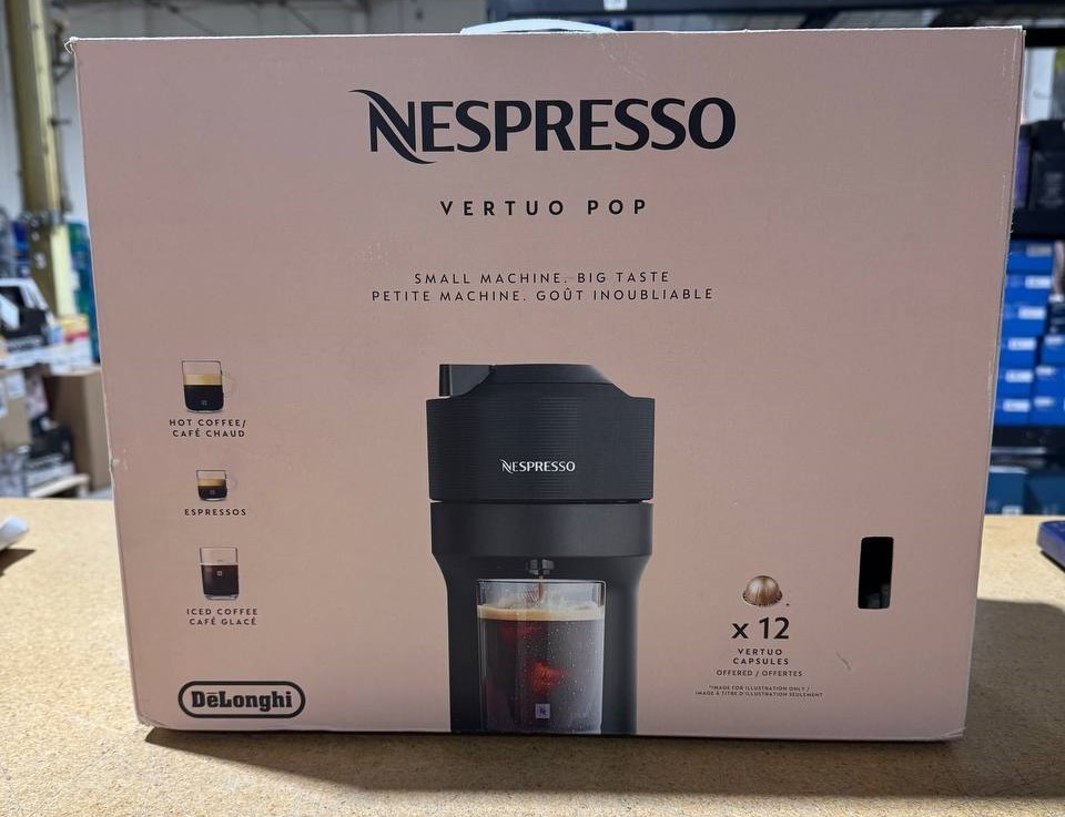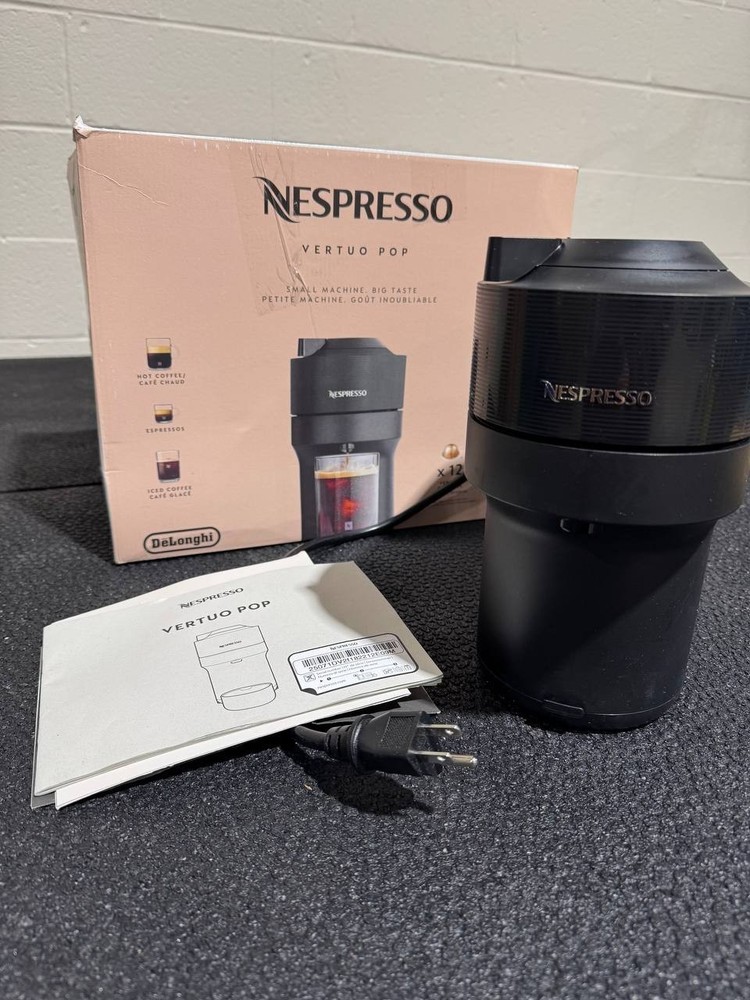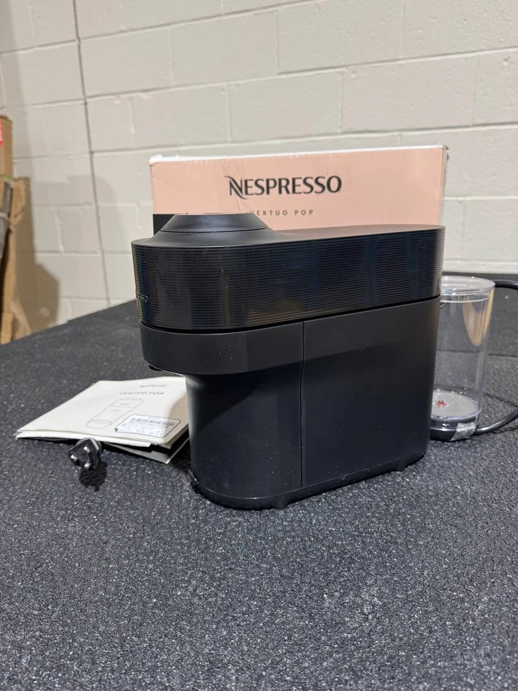 Nespresso Vertuo Pop Coffee & Espresso Maker – Black – Used (Very Good Condition) Enjoy café-quality coffee and espresso at home with the Nespresso Vertuo Pop by De’Longhi . This compact and modern machine uses Nespresso’s Vertuo technology to deliver rich flavor and smooth crema at the touch of a button, all in a sleek black finish . 🔹 Condition Note: This item is Used – Very Good Condition . It has been lightly used, fully tested, and thoroughly cleaned. The machine works perfectly. ⚠️ Important Note: The drip tray cup is missing . The machine can still be used without the drip tray , especially with taller mugs. Key Features Brews both coffee and espresso using Nespresso Vertuo capsules One-touch operation with automatic capsule recognition Rich crema and consistent extraction with Vertuo technology Compact, space-saving design Fast heat-up time Sleek black finish suitable for any kitchen Specifications Brand: Nespresso by De’Longhi Model: Vertuo Pop Product Type: Coffee & espresso maker Color: Black Capsule System: Nespresso VertuoLine Power Source: Electric (corded) Condition Used – Very Good Lightly used with minimal cosmetic signs of use Fully tested and functions as intended Clean with no leaks, odors, or performance issues Missing drip tray cup (does not affect operation) What’s Included Nespresso Vertuo Pop Coffee & Espresso Machine (Black) Water tank Power cord Not Included: ❌ Drip tray cup ❌ Coffee tasting / welcome capsule set Buyer Notes Compatible with Nespresso Vertuo capsules only Machine operates normally without the drip tray Photos show the exact item you will receive