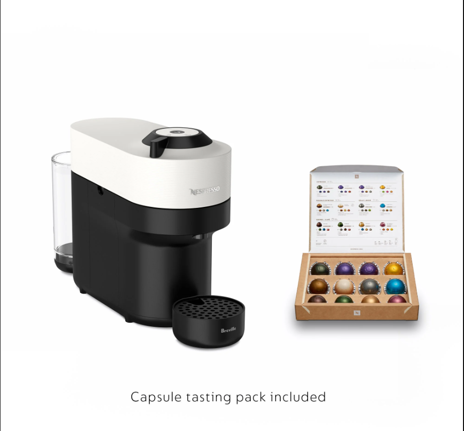 Nespresso Vertuo Pop Coffee & Espresso Maker – White – New Open Box (Welcome Tasting Set Included) Enjoy café-quality coffee and espresso at home with the Nespresso Vertuo Pop by Breville . This compact, modern machine uses Nespresso’s Vertuo technology to deliver smooth crema and consistent flavor at the touch of a button, all in a clean white finish that complements any kitchen. 🔹 Condition Note: This item is New – Open Box . The box was opened for inspection only . The machine has never been used or brewed with . Key Features Brews both coffee and espresso using Nespresso Vertuo capsules One-touch operation with automatic capsule recognition Rich crema and consistent extraction with Vertuo technology Compact, space-saving design Fast heat-up time for quick brewing Modern white finish for a clean, stylish look Specifications Brand: Nespresso by Breville Model: Vertuo Pop Product Type: Coffee & espresso maker Color: White Capsule System: Nespresso VertuoLine Power Source: Electric (corded) Condition New – Open Box Brand new and unused Opened only for inspection No signs of use, water, or coffee residue Original packaging included (box may show light handling or shelf wear) What’s Included Nespresso Vertuo Pop Coffee & Espresso Machine (White) Nespresso Vertuo welcome coffee tasting set (included) Water tank Drip tray Power cord Original packaging Buyer Notes Compatible with Nespresso Vertuo capsules only Excellent choice for new Nespresso users or as a stylish kitchen upgrade