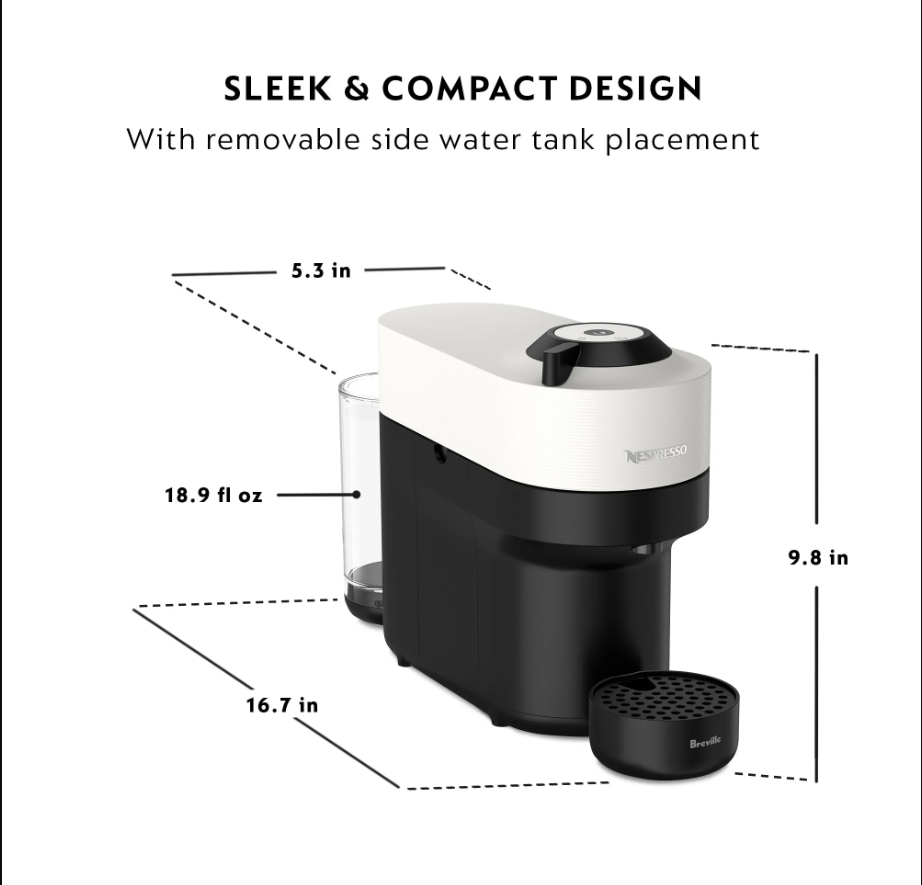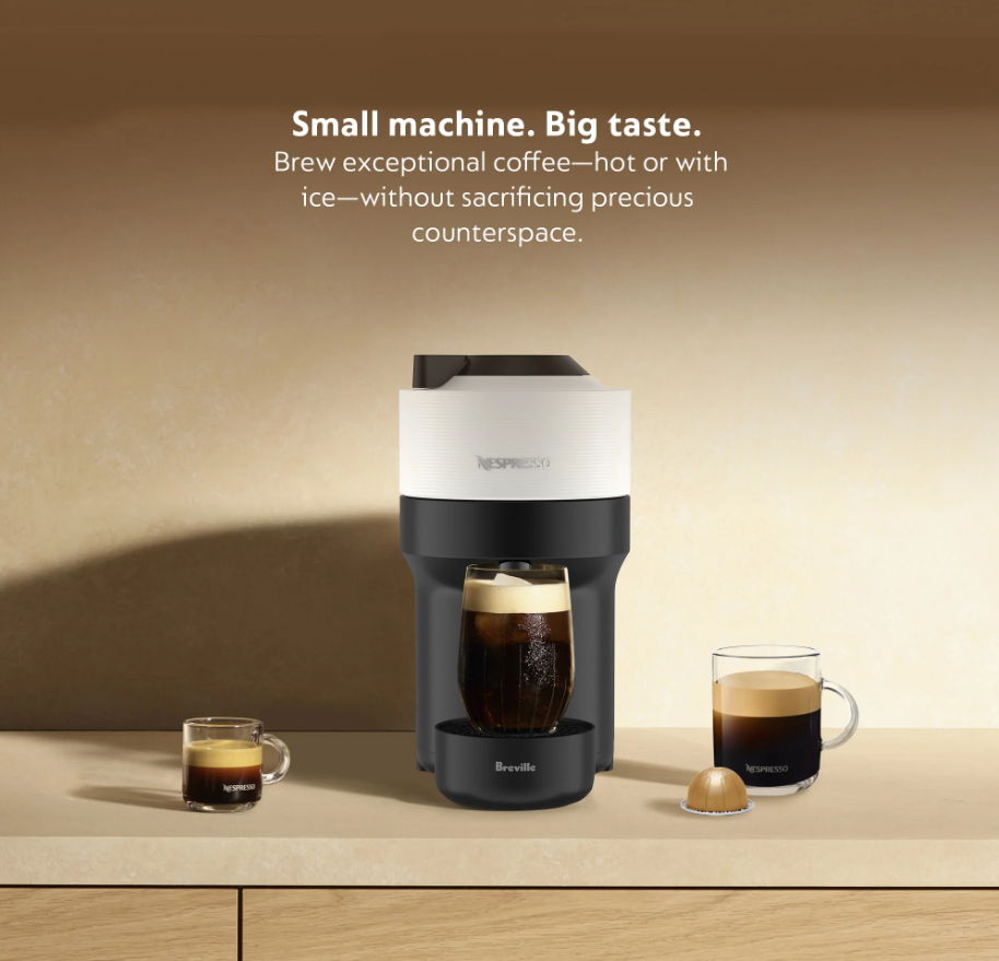 Nespresso Vertuo Pop White Single Serve Coffee and Espresso Maker by Breville