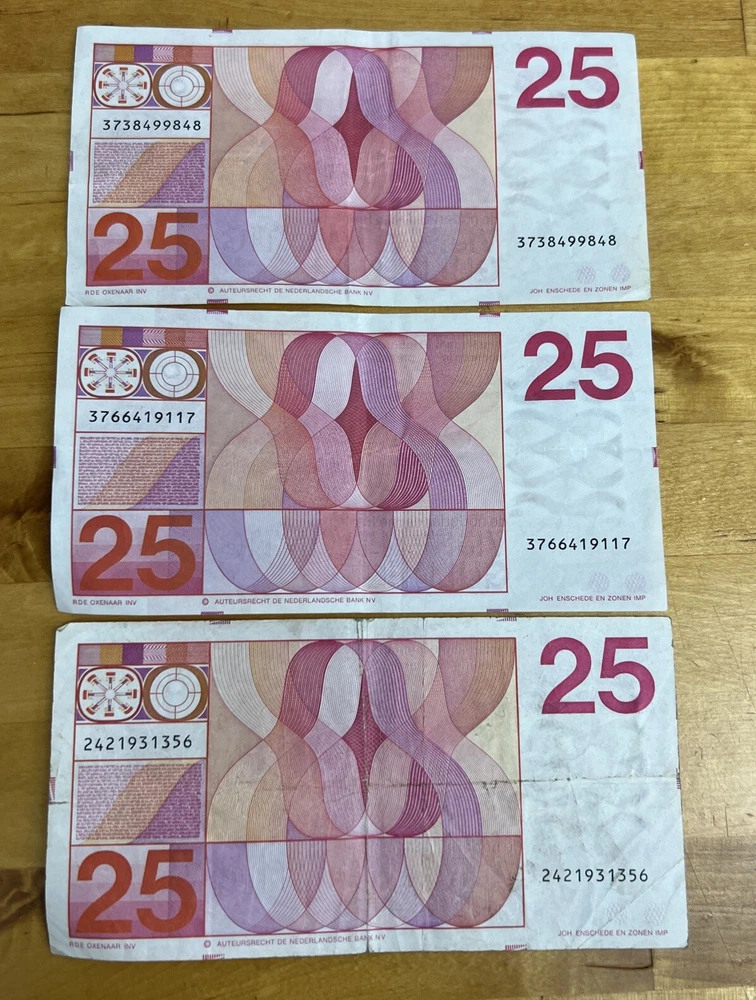 HomeNetherlands 25 Gulden Bank Notes 1971 Lot Of 3