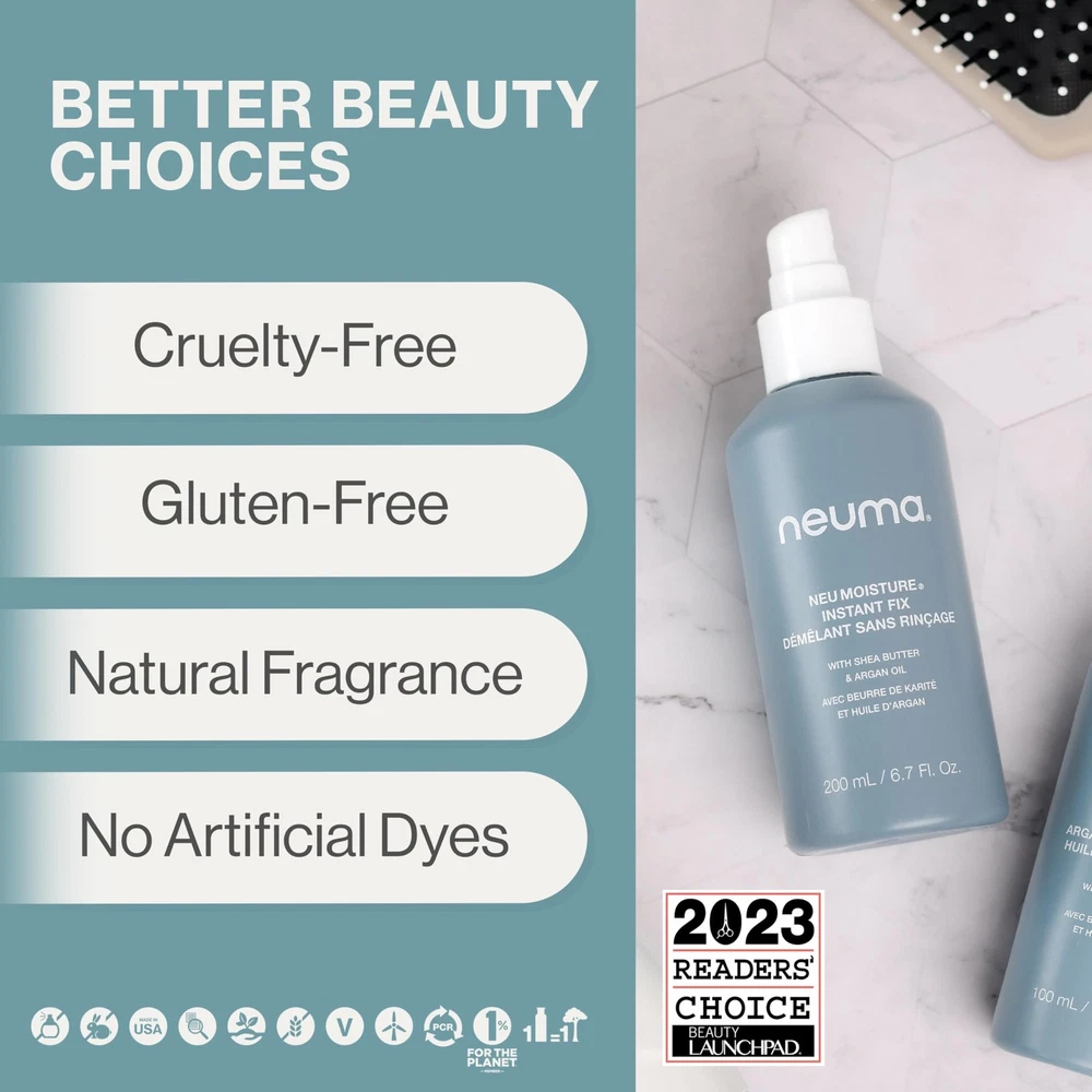 Revitalizes with Kalette, Coconut, and Vanilla: Rich in antioxidants, our leave in hair treatment spray helps preserve hair from heat damage while maintaining color radiance. Nourishes with Shea Butter: Our daily hair detangler spray adds nourishing moisture to prevent dryness and frizz, promoting silky, smooth, and shiny hair. Protects with Argan Oil: Enhancing elasticity and shine, this hair moisturizer spray helps to maintain moisture content to protect your hair from breakage and frizz. Seals the Cuticle: The Instant Fix protectant spray is designed to protect hair from further heat damage by sealing the cuticle for a smoother finish. Preps for Styling: Ideal as a daily pre-styling treatment, this leave in treatment spray ensures optimal results and protects hair during heat styling. Daily Use Essential: Perfect for everyday hydration and detangling, our hair protectant spray is specially formulated to leave your hair consistently soft and manageable. Quick & Easy Application: Instant Fix hair treatment spray comes in a convenient spray formula for effortless and quick application on wet or dry hair. Natural Ingredients: 100% vegan, cruelty-free, gluten-free, soy-free, sulfate-free, and free of synthetic fragrances, ingredients, artificial dyes & colorants. Manufactured with wind power & renewable bottles.