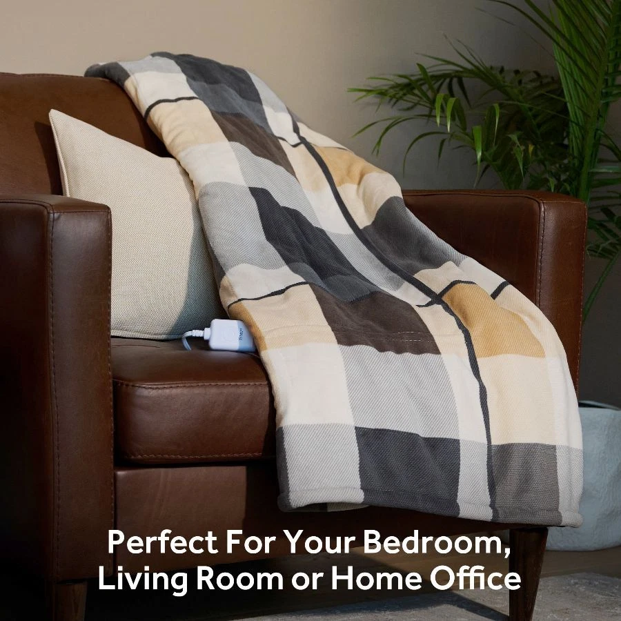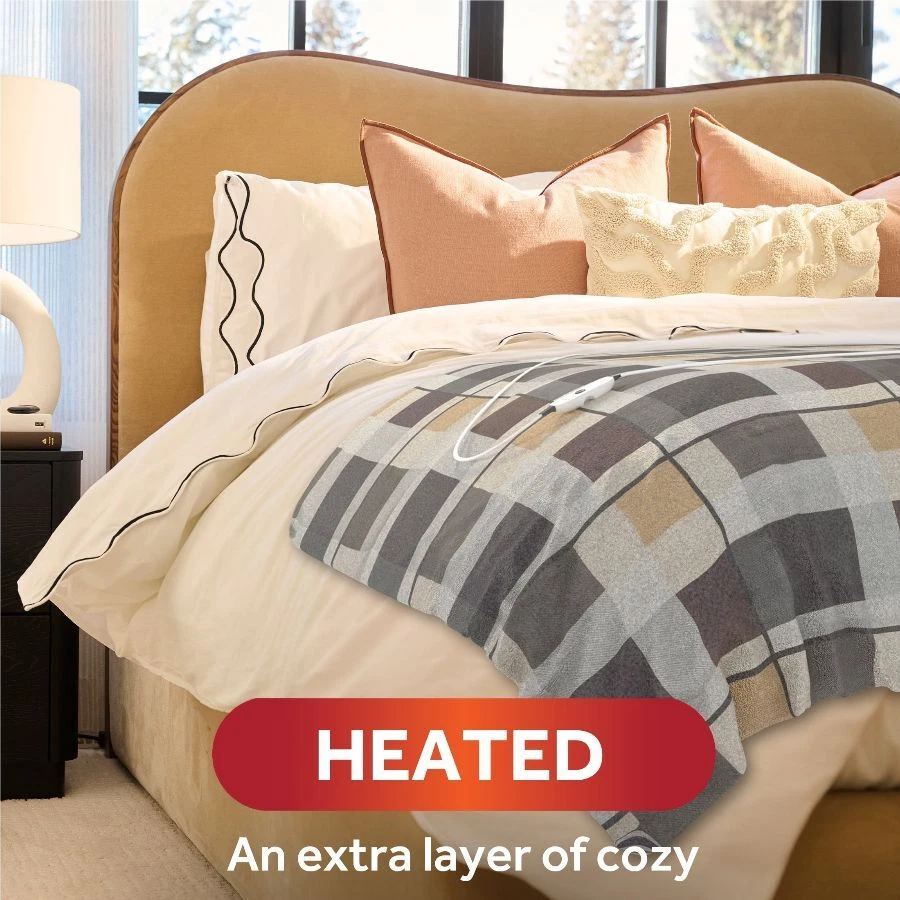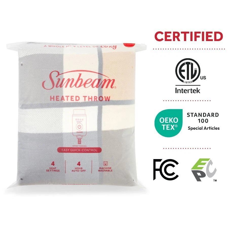 Sunbeam Neutral Plaid Microplush Sherpa/Faux Shearling Heated Throw wraps you in luxurious warmth, perfect for those chilly cold nights. Imagine sinking into the rich and ultra-cozy microplush with reverse Sherpa/Faux Shearling fabric, keeping you toasty and comfortable while you relax. The stylish 50" x 60" electric blanket makes a great accessory while relaxing on the couch, bed or your favourite chair and the Neutral Plaid color adds a stylish to any décor. This throw features an easy-to-use push-button controller with 4 adjustable heat settings, so you can find your perfect temperature. The 4-hour auto shut-off function ensures added peace of mind. Premium heated wires are equipped with advanced technology to ensure continuous even heat distribution. When it’s time to clean, simply detach the controller from the throw and place in the washing machine and dryer for easy care. It stays silky soft wash after wash. Experience the ultimate gift of warmth with a Sunbeam heated electric throw for you and your family and friends. On Dec 26, 2024 at 19:37:20 PST, seller added the following information: