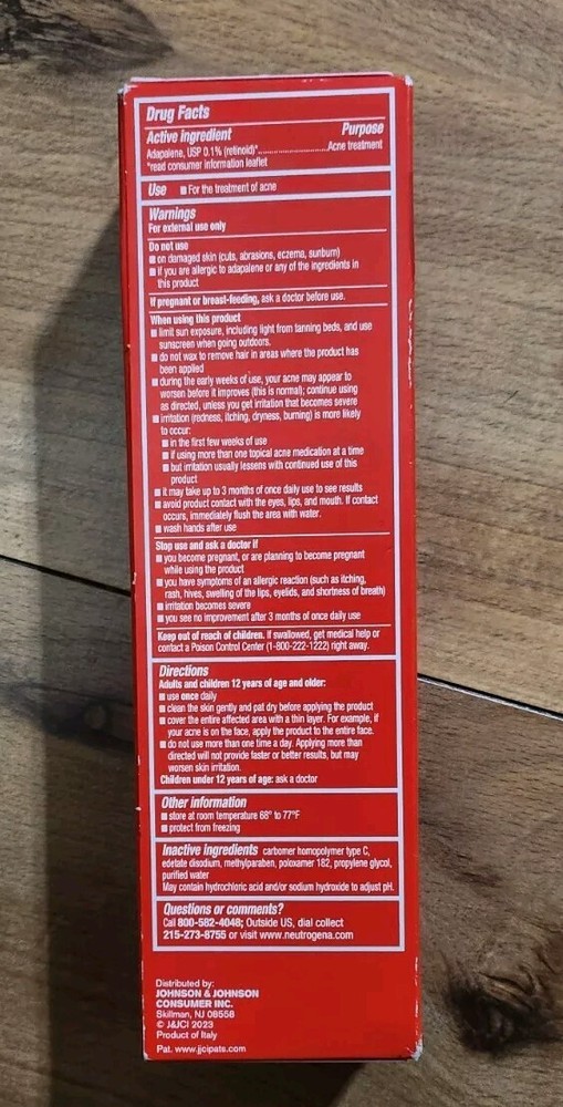 Neutrogena Acne Treatment Adapalene Gel 0.1% Topical Retinoid Exp 11/2025 NEW.