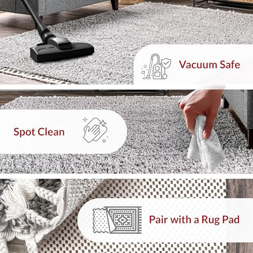 Neva Modern Grey Shag Accent Rug with Tassels 2x3