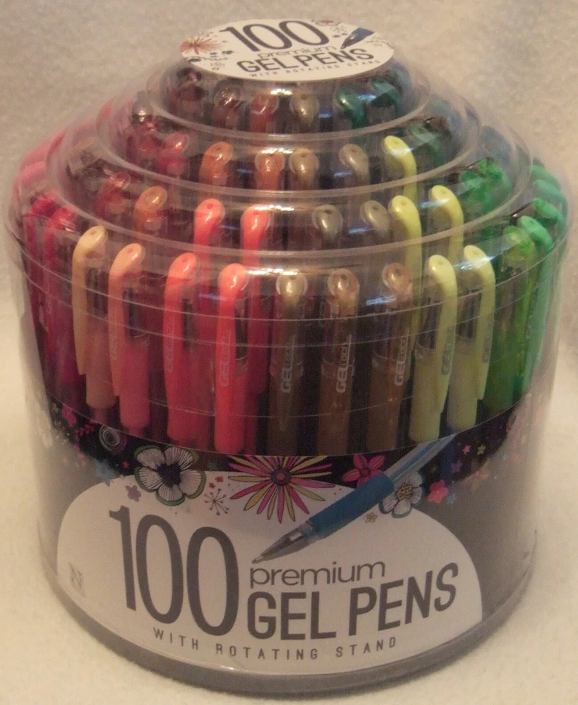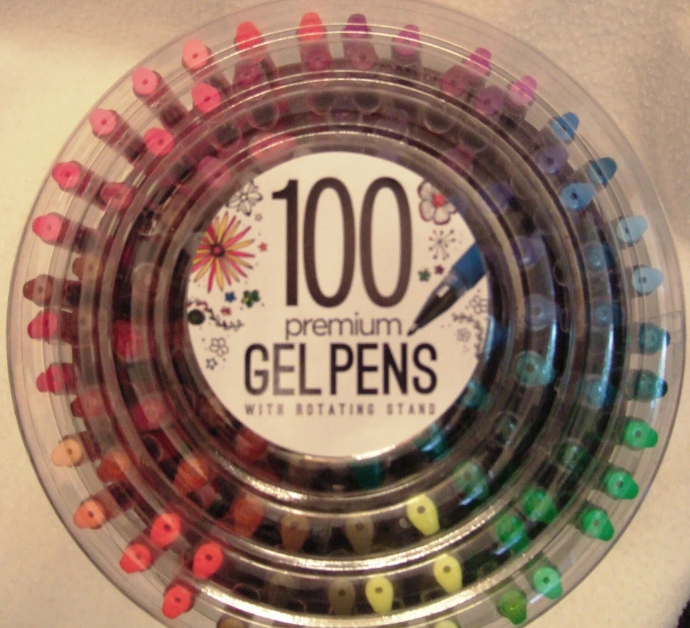 New 100 Gelwriter Pens Gel Writer Storage Rack Set Glitter Neon Metallic Pastel New 100 Gelwriter Pens Gel Writer Storage Rack Set. Features: Acid-free archival quality ink Quick drying and fade resistant ink Latex-free comfort grips Water resistant Check safe Round Rotating Pen Stand Ink Styles: Basic Metallic Neon Neon Glitter Pastel Colored Glitter Get this great bargain today! This item is BRAND NEW. All items are described as best as possible. This item comes from a smoke-free home. Feedback will be left after buyer's satisfaction notification to seller. Check out my other items ! Be sure to add me to your favorites list !