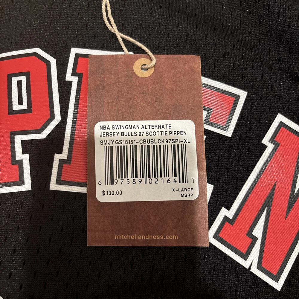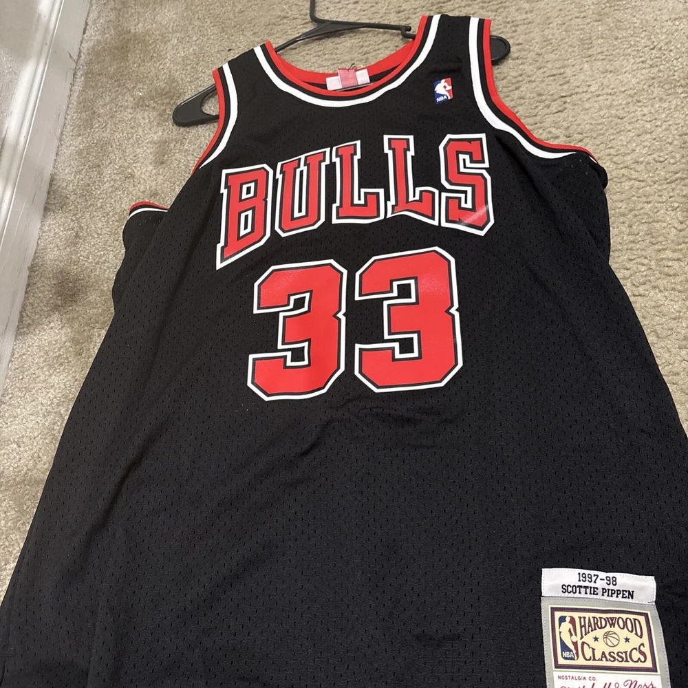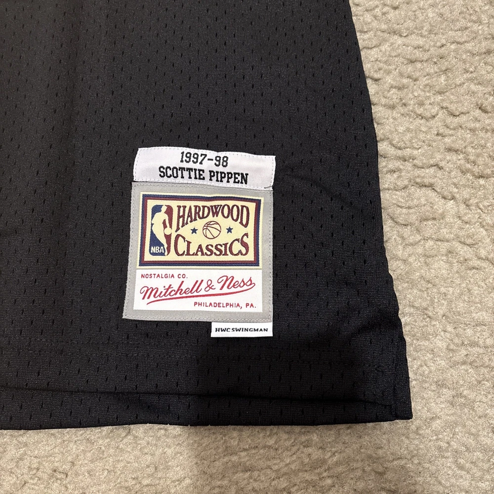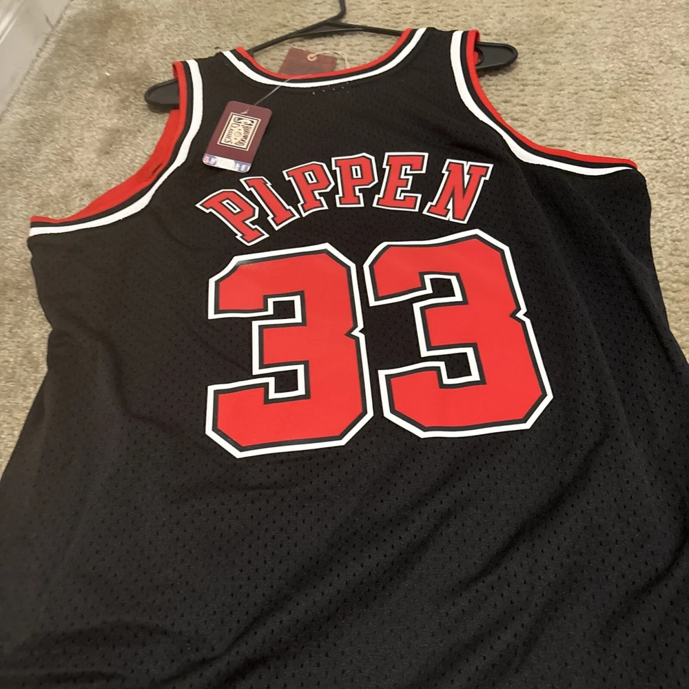 Pre & Post Season:Regular SeasonBrand:Mitchell & NessLeague:National Basketball Association (NBA)Player:Scottie PippenCountry/Region of Manufacture:ChinaProduct:JerseySport:Basketball-NBATeam:Chicago BullsFeatured Refinements:Swingman SouvenirSize:XLGender:MenColor:BlackOfficially Licensed:Yes