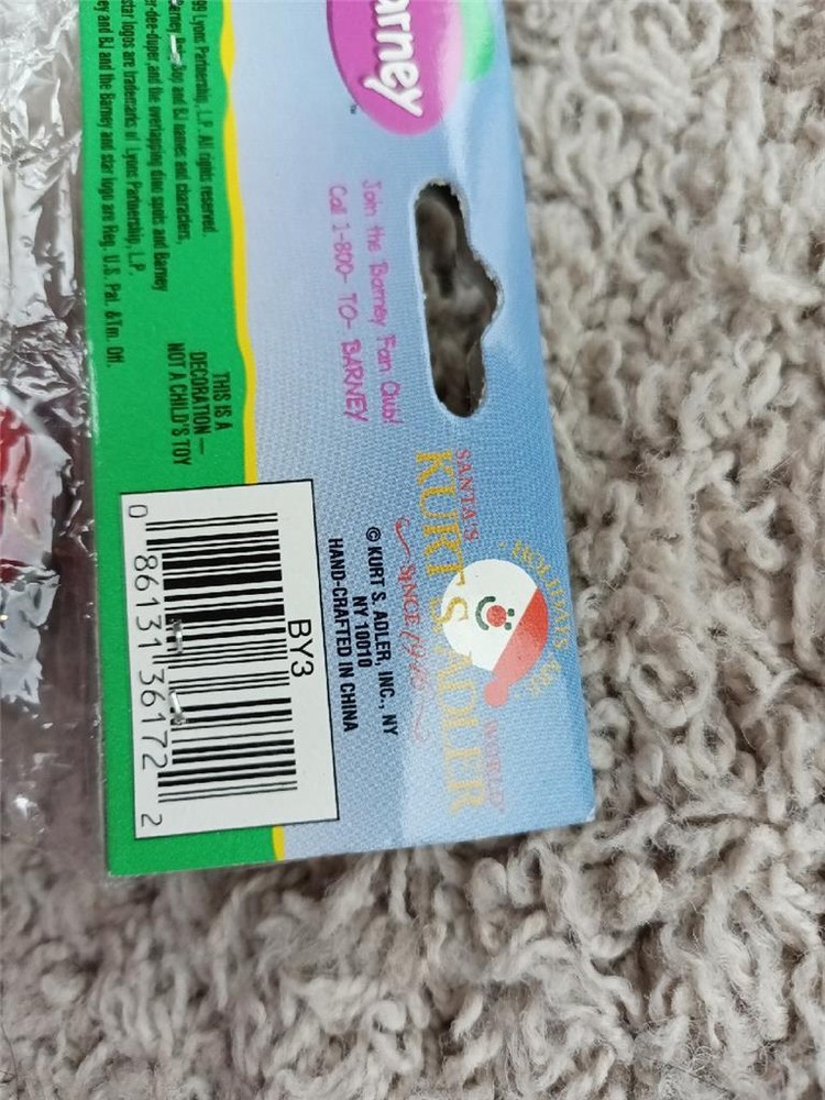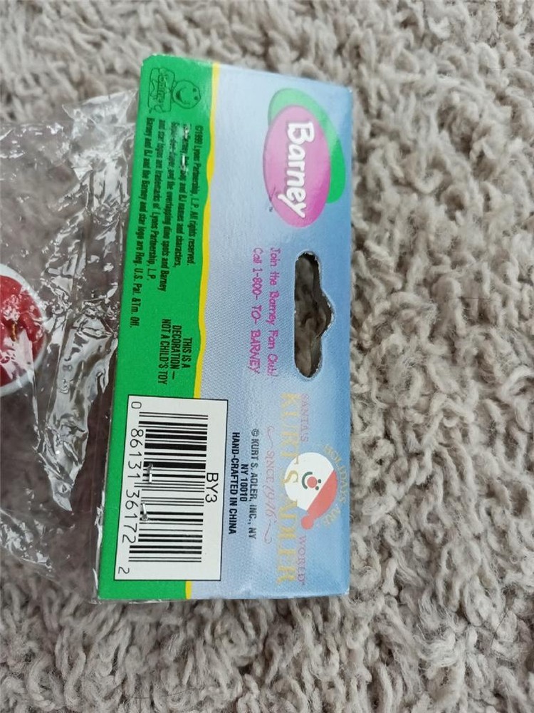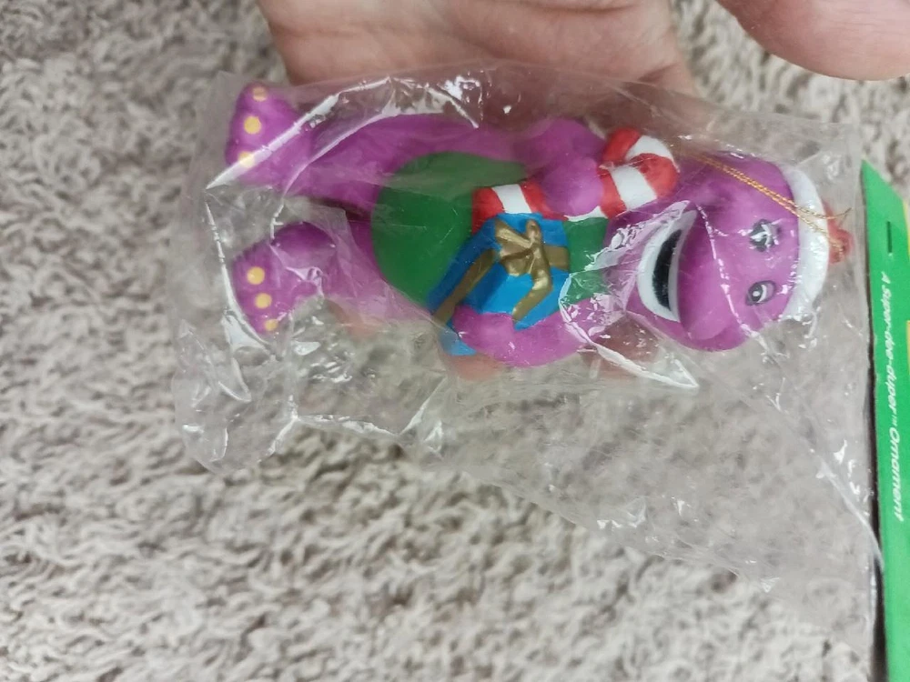 New Barney 1999 Purple Dinosaur Kurt Adler Ornament Ceramic Christmas Santa NRFB New Barney 1999 Purple Dinosaur Kurt Adler Ornament Ceramic Christmas Santa NRFB Click images to enlarge Description You are looking at a New Kurt Adler Barney the Purple Dinosaur Christmas Ornament that is NRFP (never opened or removed etc..). Barney is wearing a Santa hat. He's holding a gift and candy cane. He's breakable (most likely ceramic). From 1999. Part of my aunt's estate and Barney collection. She has a few of these. Super Dee Duper Ornament! This comes from my smoke free and smell free home. He will come securely shipped. I use Click N' Ship so your item goes out quickly. Shipping HOW I ship: USPS First Class or Priority Mail with DELIVERY CONFIRMATION . Priority Mail includes INSURANCE and Delivery Confirmation . Combined Shipping: I LOVE to combine shipping to save you money. I adjust it based on the weight of all of the items together, size of the box (new thing with USPS), and distance. Please contact me for a quote on combined shipping. Speed of Shipping: I SHIP VERY FAST with Click N' Ship. You pay, I print, and my postal carrier picks the item up at my front door. You're not waiting for me to drive to the Post Office, wait in line etc.... IMPORTANT: Once the Post Office has your package, I have no control over what they do or how long it takes them to get it to your door. Tracking is uploaded and you can follow your item daily online on your eBay purchases page. Allow enough time for your item to get to you (especially if it's gift, holiday or a birthday party item). FYI "guaranteed" arrival times by the post office on their website and on eBay are only "estimates" so again, plan accordingly. The ONLY guaranteed speed for USPS is EXPEDITED OVERNIGHT DELIVERY. If you're LOCAL, I appreciate you wanting to save time and me money on shipping. However, most times I cannot meet someone to pick up an item so please accept the shipping terms as going through the Post Office. I do make exceptions on LOCAL if you're near me, or I know you, or the item is LARGE and/or FRAGILE. Terms of Sale I strive to make my buyers happy and offer a return policy on almost all of my auctions with a few exceptions. Please know your sizing ! I give dimensions when selling used clothing to avoid any confusion. Honesty is greatly appreciated. Returns: Items must be returned in the condition in which it was sent. Example: NWT clothing must have the tags on it , cannot be worn or tampered with. I'm the most flexible and easy to work with Ebayer. If there is an issue (which I don't expect there to be) please email me first. About Us I pride myself on being accurate and offering a detail-oriented auction/sale with plenty of pictures. Ebay should be a fun and happy experience for both buyers and sellers. Contact Us Please feel free to contact me through Ebay with any questions. Pictures sell! Auctiva offers Free Image Hosting and Editing. 300+ Listing Templates! Auctiva gets you noticed! The complete eBay Selling Solution. Track Page Views With Auctiva's Counter
