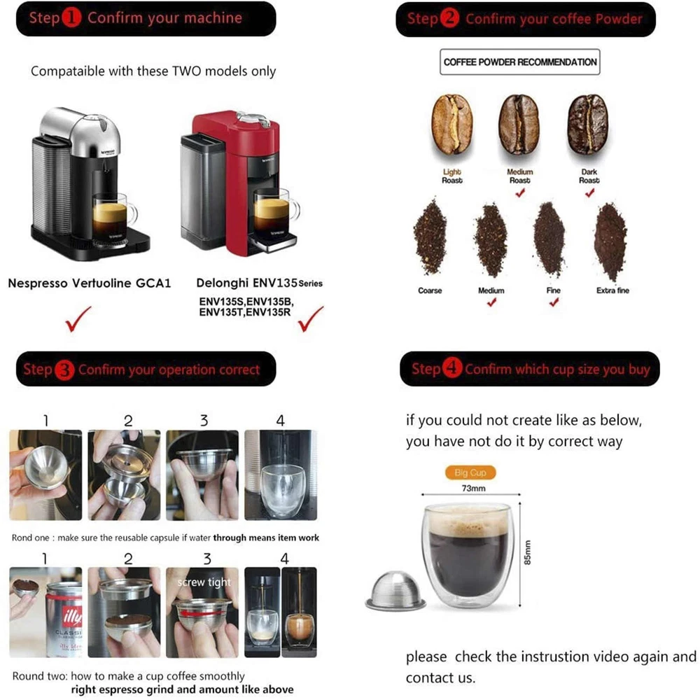 Product Description New 1PCS For Nespresso Vertuoline 230ml Steel Reusable Coffee Pod Capsule Features: Rich in fat and a delicate taste Can be filled with your favorite coffee powder Accepts finely ground coffee for a richer fat Reusable, environmentally friendly and cost-effective Specifications: Material: Stainless steel Coffee capacity: 230ml Grounds: 9g Suitable for NESPRESSO Vertuoline GCA1 Coffee Machine, for Delonghi ENV135 Coffee Machine Package includes: 1x Stainless steel capsule pod (metal cover) 1x Plastic brush 1x Tablespoon Shipping Returns Contact Us Payment 1. Items sent from US warehouse. 2.Receiving time = Processing time + Shipping time 3. Processing Time: Around 1-2 business Days 4. Shipping Time: 3-5 business day it may have a little delay during some holiday (such as Christmas),any problem ,please feel free to contact 1. 30 days warranty from the purchased date. Please contact us via email before returning the defective item. 2.Our warranty does not extended to any product that are physically damaged or that are not under normal operating conditions as result of misuse or improper installation on the buyer/user's part. 3.Return items should include the original packaging and all accessories. buyers MUST contact us for the returning address. 4.In all cases, buyers pay shipping fees at their own cost to return products for exchange or refund. We will be responsible for the postage of replacements. Refund will be made upon receipt of the returned item. Pls contact us if you have any problems,we will try our best to solve for you We accept all verified payment from eBay. Shipping 1. Items sent from US warehouse. 2.Receiving time = Processing time + Shipping time 3. Processing Time: Around 1-2 business Days 4. Shipping Time: 3-5 business day it may have a little delay during some holiday (such as Christmas),any problem ,please feel free to contact Returns 1. 30 days warranty from the purchased date. Please contact us via email before returning the defective item. 2.Our warranty does not extended to any product that are physically damaged or that are not under normal operating conditions as result of misuse or improper installation on the buyer/user's part. 3.Return items should include the original packaging and all accessories. buyers MUST contact us for the returning address. 4.In all cases, buyers pay shipping fees at their own cost to return products for exchange or refund. We will be responsible for the postage of replacements. Refund will be made upon receipt of the returned item. Contact Us Pls contact us if you have any problems,we will try our best to solve for you Payment We accept all verified payment from eBay. You may also like For DeWalt 20V DCB201 Li-Ion Battery Housing Case DIY Kit 5-Cell 18650 Replace G 15.76 USD 17.51 USD 10% off 22.5W Fast Charging 8 x 18650 Battery DIY Detachable Power Bank Shell Case 15.14 USD 16.82 USD 10% off 2 PCS 2 inch Replacment Speaker for JBL Charge 3 Bluetooth Full Range 4ohm 10W D 16.03 USD 17.81 USD 10% off 2x 3-AAA Battery Holder Cylindrical Case Plastic For Flashlight Round Circular 8.19 USD 9.1 USD 10% off Aluminum 1/35 German King Tiger Tank Metal Gun Barrel+Shells for Tamiya 35169 A 13.36 USD 14.84 USD 10% off Portable 4pcs 3 IN 1 Camera Lens Dust Wiper Cleaning Pen Dust Cleaner Soft Brush 10.15 USD 11.28 USD 10% off powered by