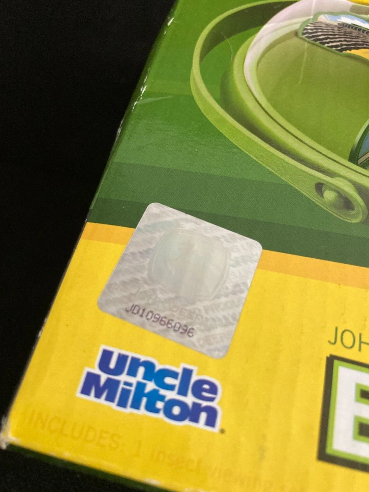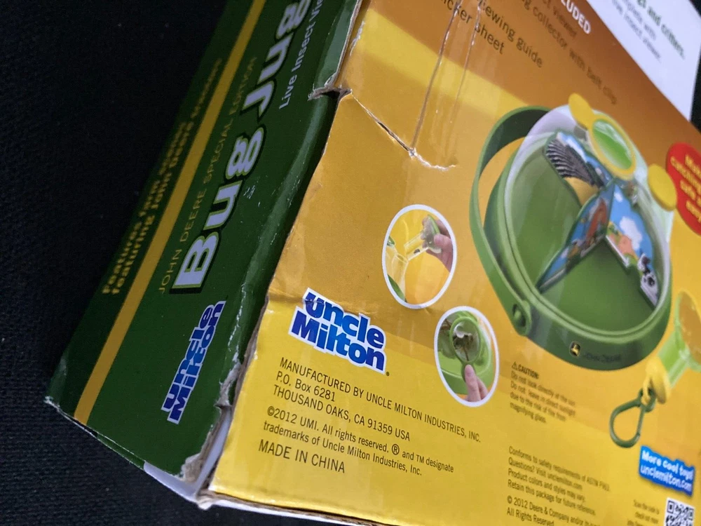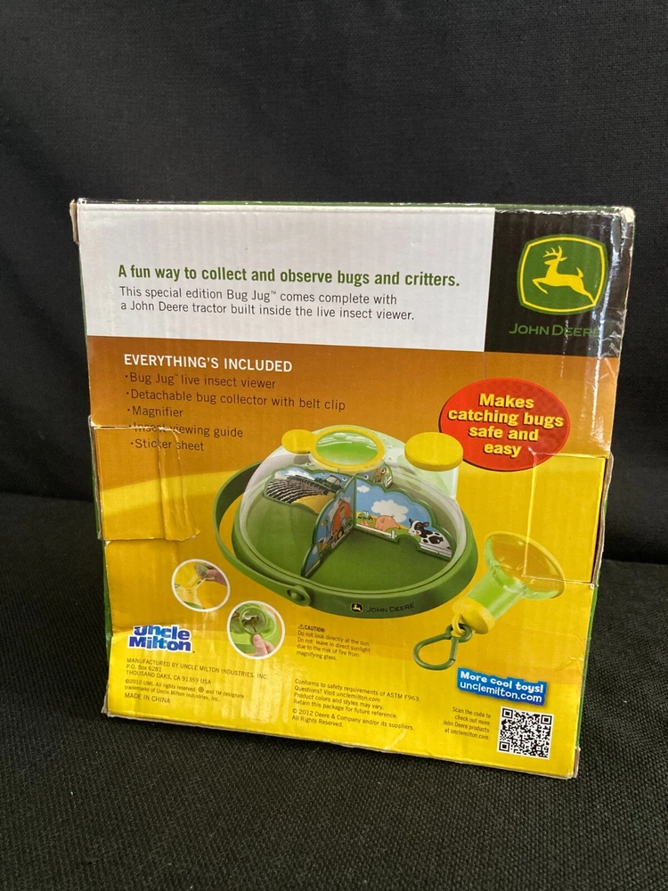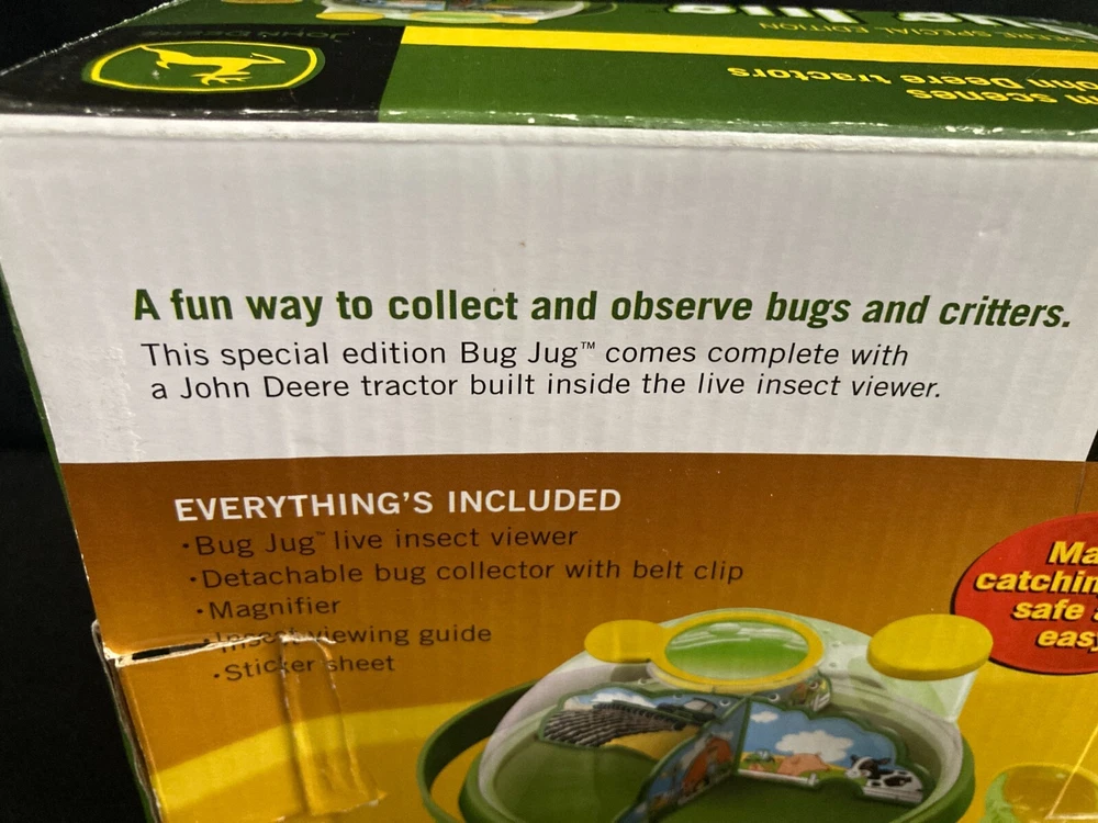 Discover the fascinating world of bugs with the 2012 John Deere Special Edition BUG JUG Live Insect Viewer by Uncle Milton. This unique toy allows kids aged 4 and above to explore the wonders of nature and learn about different insects and their habitats. The device features a live insect viewer that provides a clear and detailed view of tiny creatures, making it an excellent educational tool for young children. With its sturdy construction and high-quality optics, the BUG JUG Live Insect Viewer is sure to provide hours of fun and educational playtime. Whether your child is a budding entomologist or simply curious about the world of bugs, this toy is the perfect addition to their collection. *Box is slightly dinged but the item is in mint condition
