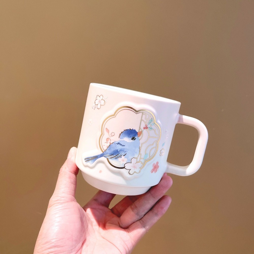 New 2022 China Starbucks Sakura Season 15oz Bird Hanami Ceramic Mug Material:Ceramics Capacity:15oz(435ml) Released time:2022/3/1