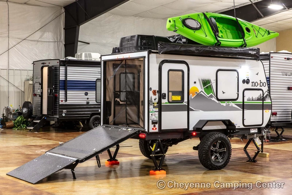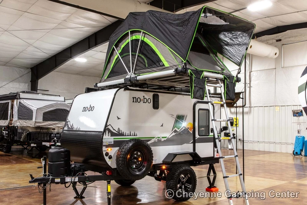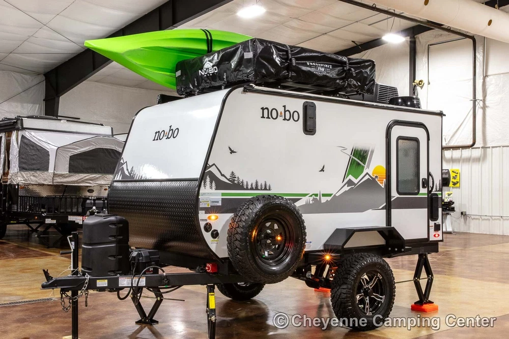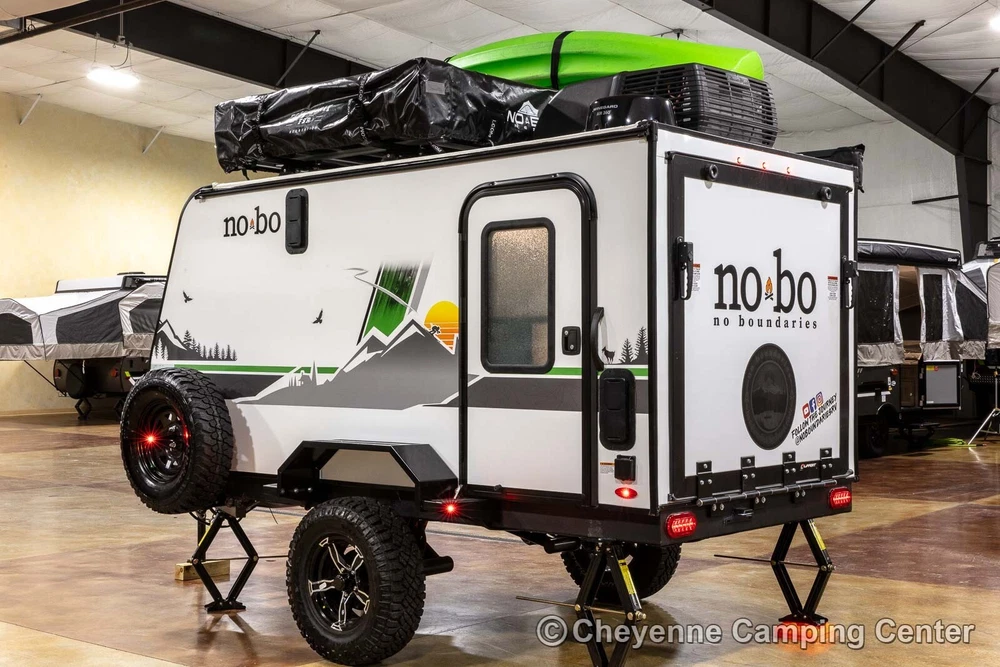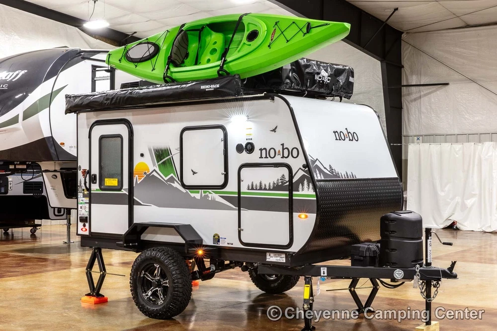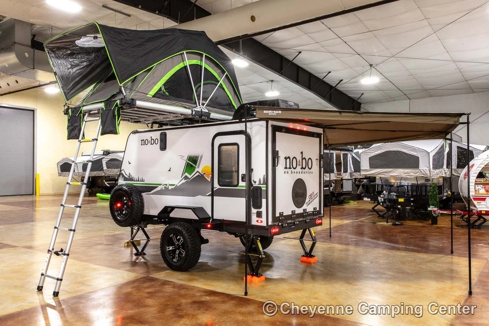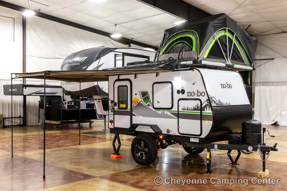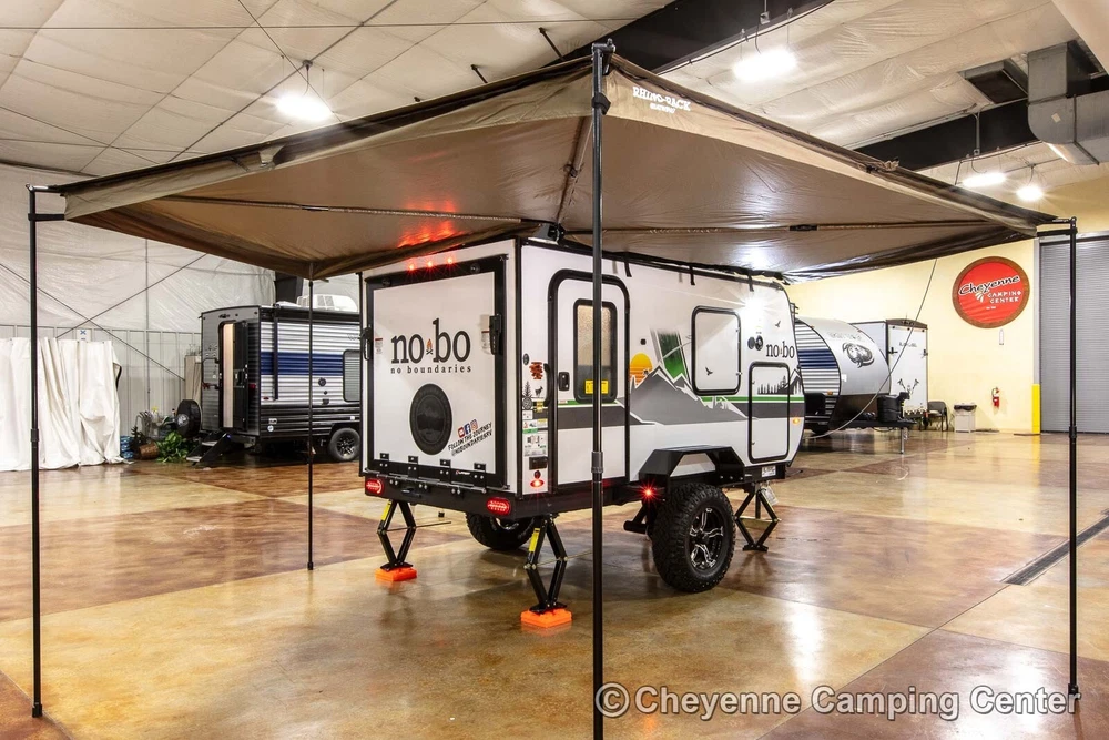 2023 Forest River No Boundaries 10.6 Toy Hauler Travel Trailer Call Anytime 888-680-4465 Click here to play video slideshow in new window. Floorplan New 2023 Forest River No Boundaries 10.6 Toy Hauler Travel Trailer Cheyenne Camping Center is a family-owned business established in 1966. We’re a proud Forest River dealer and a longtime Top-Rated eBay Seller. We offer the best RV prices to buyers across the country. We don’t require you to purchase overpriced service plans or other needless services, and never have any hidden or added fees. Please see our feedback, you can be confident you will receive the best service and the lowest possible prices! This is a 2023 Forest River No Boundaries 10.6 Toy Hauler Travel Trailer offered at a special CLEARANCE PRICE! Availability is limited, so don’t wait! Designed for those who push limits, the versatile and exceptionally light weight No Boundaries (NOBO) travel trailer is rugged enough for any outdoor enthusiast. You’ll love the innovative and durable rooftop NOBO Nest tent. Towable by both 4 and 6-cylinder vehicles, NOBO is ready when you are. The NOBO 10.6 has welded aluminum frame construction and laminated side walls. The walls are laminated on AZDEL which is 50% lighter than wood and impervious to water make it both light weight and durable! Block foam insulation is cut to exact size to fit every opening in the walls, floors, and roof. This construction ensures the best insulation, cooler when it’s warm out and warmer when it’s cold out. The NOBO has a fully walkable Xtreme Ply PVC roof. The strongest RV roof on the market with 2x the puncture strength it is the most energy efficient and reflective roof out there keeping your trailer cooler. The roof comes with a 15 year, 100% manufacturer warranty! The underbelly is fully enclosed with enclosed and heated tank. The enclosed underbelly protects the tank, plumbing, wiring, and chassis of the trailer. The NOBO 10.6 features the new Curt Beast Mode independent suspension and wonderful NOBO Nest rooftop tent system that sets up in minutes! You will also have an outdoor kitchen with 12V portable refrigerator, cooktop, spray hose and pantry, 13,500 BTU air conditioner with 5500BTU heat strip, Batwing awning that wraps around the side and rear, cold weather package, TST tire monitoring system, two deep cycle RV batteries, screwed & glued hardwood cabinetry, JBL Flip 5 Bluetooth stereo, 60′ x 82″ convertible sofa bed, rear screen enclosure, one year complimentary 24/7 roadside assistance, one-year manufacturer’s warranty and much more! Please see our feedback and browse our eBay store for more new and used RVs. You can also FOLLOW US so you can see our latest offerings in your eBay homepage feed! FAQ What's the catch? There is no catch, we simply offer the lowest prices with no hidden or added fees! See our feedback and buy with confidence. Are there any extra fees? There are NO ADDITIONAL or HIDDEN FEES for our RVs. We do not charge document, eBay, or prep fees and don’t require you to finance your purchase with us to get our best price. Please consider this when comparing prices. If you are an Iowa or Illinois resident, we collect tax, title, and registration fees. If you register in any other state, you will be responsible for your state’s tax, title, and license fees when you register. Will you take less than the listed price or add extra equipment at no charge? We always offer our best price, which we feel makes for a better buying experience. Everyone pays the same low price! Can I speak to someone before bidding or using buy it now? Absolutely, please call us at 888-680-4465 and mention you saw us on eBay. You can also text at 563-284-6868. Do you ship RVs? We do offer shipping to the contiguous United States at $2.40 per loaded mile (one way). This rate is subject to change at any time as fuel prices fluctuate. You can estimate the shipping costs by mapping the distance from Walcott, Iowa. You might also check uship.com for better rates. It has become difficult to transport into Canada due to broker requirements, if you would be interested in a rendezvous on the U.S. side of the border, we will provide the required bill of sale, no-recall letter and certificate of origin for Canadian import. Please contact us for our current transport schedule before buying or bidding. How much is a weight distribution hitch package? A weight distribution hitch package with one sway control is $450, or $500 with two sway controls. If you don’t have a brake controller, we can install one for $175 in many vehicles. The hitch package does not include the receiver hitch attached to your vehicle. Does this RV come with a warranty? All of our new RVs come with a full manufacturer’s warranty that is good throughout the U.S. and Canada. If you need warranty service, just contact us, and we will assist you in arranging service at your nearest authorized service center. Of course, if you are local, you can schedule warranty service with us. We also offer the best price for extended service plans if you are interested. Do you offer financing? Yes, we do offer financing at very competitive rates. You’ll need to be present at our location to sign the loan documents and present your ID. If you need shipping, you will need to secure financing with your local lender. Please note that we are not affiliated with the financing offered through eBay via the link on this page. Are your RVs fully prepped and ready to use? Yes, all of our RVs are fully prepped, including filled LP tanks, RV batteries, and sewer hoses (where applicable). All equipment is checked for proper functionality. We also offer a complimentary orientation if picked up at our location. Do you have more than one of this model in stock? We generally have multiple identical examples of our RV models at the time of listing. Please contact us for availability. Where are you located? We are located at 2960 N. Plainview Rd. in Walcott, Io