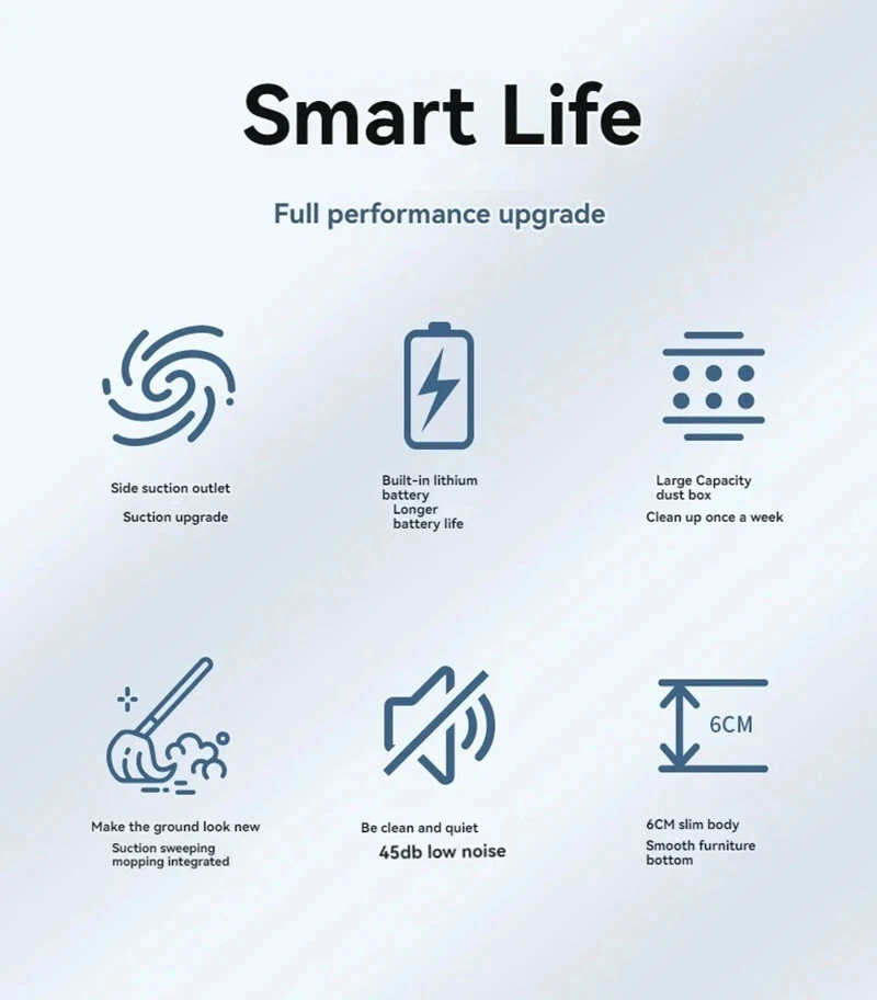 Xiaomi MIJIA 3 in 1 Smart Sweeping Robot Vacuum Cleaner 4000Pa Strong Suction Easy To Use For Hard Floors Pet Hair Carpets New Key Features: 1.Powerful 4000 Pa Suction This vacuum cleaner features a 4000 Pa strong suction that ensures maximum cleaning efficiency. Whether it's pet hair, dust, or debris, the Xiaomi sweeping robot has the power to remove even the smallest particles from both hard floors and carpets. 2.Pet Hair Removal The strong suction power and specialized brush design make this robot perfect for homes with pets. It effectively removes pet hair from carpets, rugs, and hard floors, so you don't have to worry about shedding. 3.Multi-Surface Cleaning This robot is suitable for all types of floors, including hardwood, tile, laminate, and carpets. It automatically adjusts its cleaning mode depending on the surface, ensuring optimal performance. 4.Long Battery Life The Smart Sweeping Robot comes with a high-capacity battery that provides up to 2.5 hours of continuous cleaning, allowing it to clean large areas without needing to recharge. 5.Quiet Operation Despite its powerful suction, the vacuum operates quietly, ensuring minimal disturbance while cleaning. You can even run it while you're at home without disruption. Product Specifications: Suction Power: 4000 Pa Battery Life: Up to 2 hours Cleaning Modes: Vacuuming, Mopping, Sweeping Navigation: Smart Mapping and Obstacle Avoidance Surface Compatibility: Hard Floors, Carpets, Tiles, Rugs Frequently Asked Questions (FAQ): Q: Will this robot work on carpets? A: Yes, the Smart Sweeping Robot is designed to clean both hard floors and carpets. It automatically adjusts its suction power based on the type of surface, providing optimal cleaning performance on carpets. Q: How long does the battery last on a full charge? A: On a full charge, the robot can clean for up to 2 hours, depending on the floor type and the cleaning mode used. Q: How does the smart navigation work? A: The robot uses smart mapping to learn your home layout, plan the most efficient cleaning paths, and avoid obstacles like furniture or walls. This ensures thorough cleaning while minimizing missed spots. Q: How do I clean and maintain the robot? A: The robot is easy to maintain. Simply clean the dustbin, brushes, and mop cloth regularly. The robot will also prompt you when the dustbin is full or when maintenance is needed. Q: Is it noisy when operating? A: The Smart Sweeping Robot operates quietly, with noise levels below 65 dB, so it won't disturb you while it's working. Q: What surfaces is this robot suitable for? A: The 3-in-1 Smart Sweeping Robot is suitable for a variety of surfaces, including hardwood floors, tiles, laminate, and carpets. It automatically adjusts to the type of surface it’s cleaning. Order Now and Experience the Convenience of Smart Cleaning! Say goodbye to manual cleaning and let the 3-in-1 Smart Sweeping Robot take care of it for you.