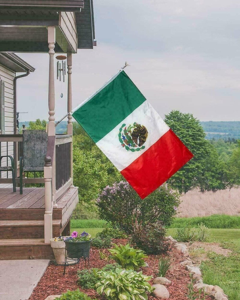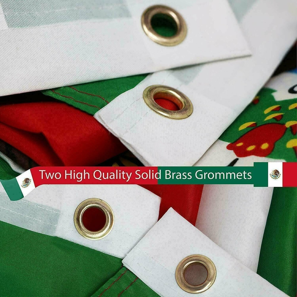 N ew 3’x5’ Polyester MEXICO FLAG Mexican Country Outdoor Banner Grommets Size: Large. Approximately 3'x5' (3x5FT) (36 x 60 inches; 91 x 152cm). Logos are printed on one side and can be seen on the other side. High quality 68D polyester material. 2 metal grommets for flag pole attachment. Double stitching fly ends with canvas header. Advanced editing Indoor or outdoor use. Recommended for use in low wind areas. Pole not included.